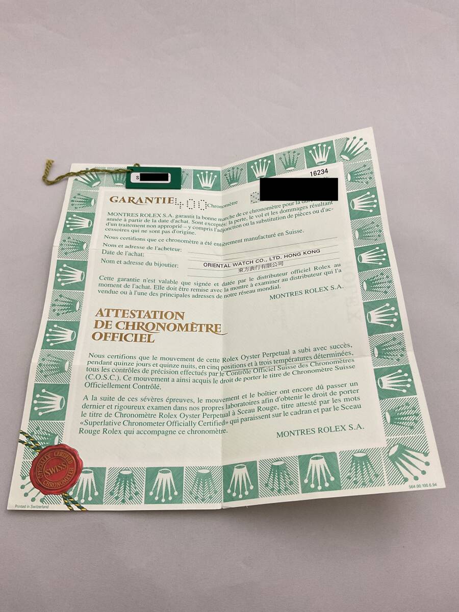 ロレックス デイトジャスト 16234 S番台 保証書です。