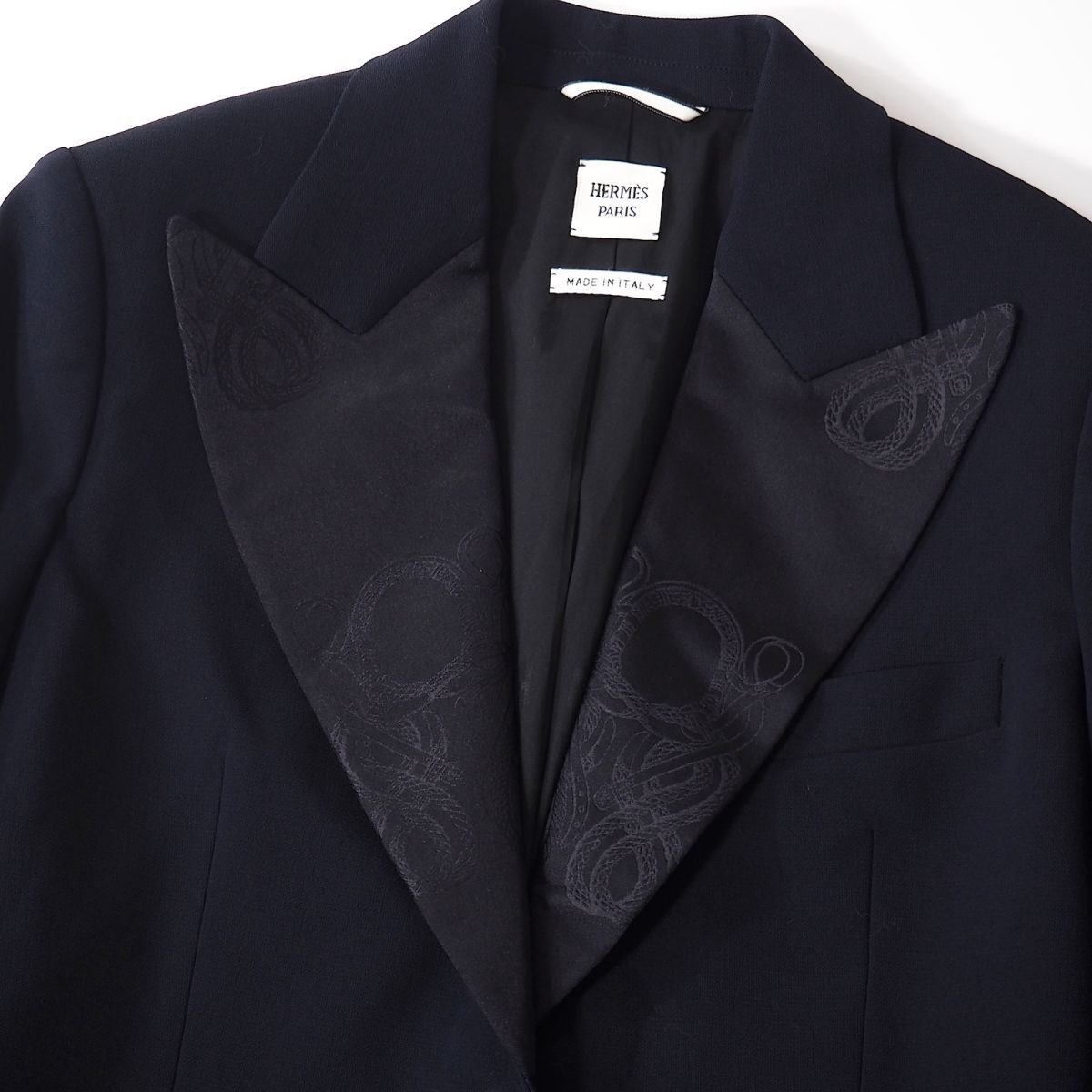 | 商品名 | 【美品】エルメス HERMES 18年製 シルクラペル エンブロイダリー ジャケット ネイビー 36 レディース 正規品 5-ZJ014 |