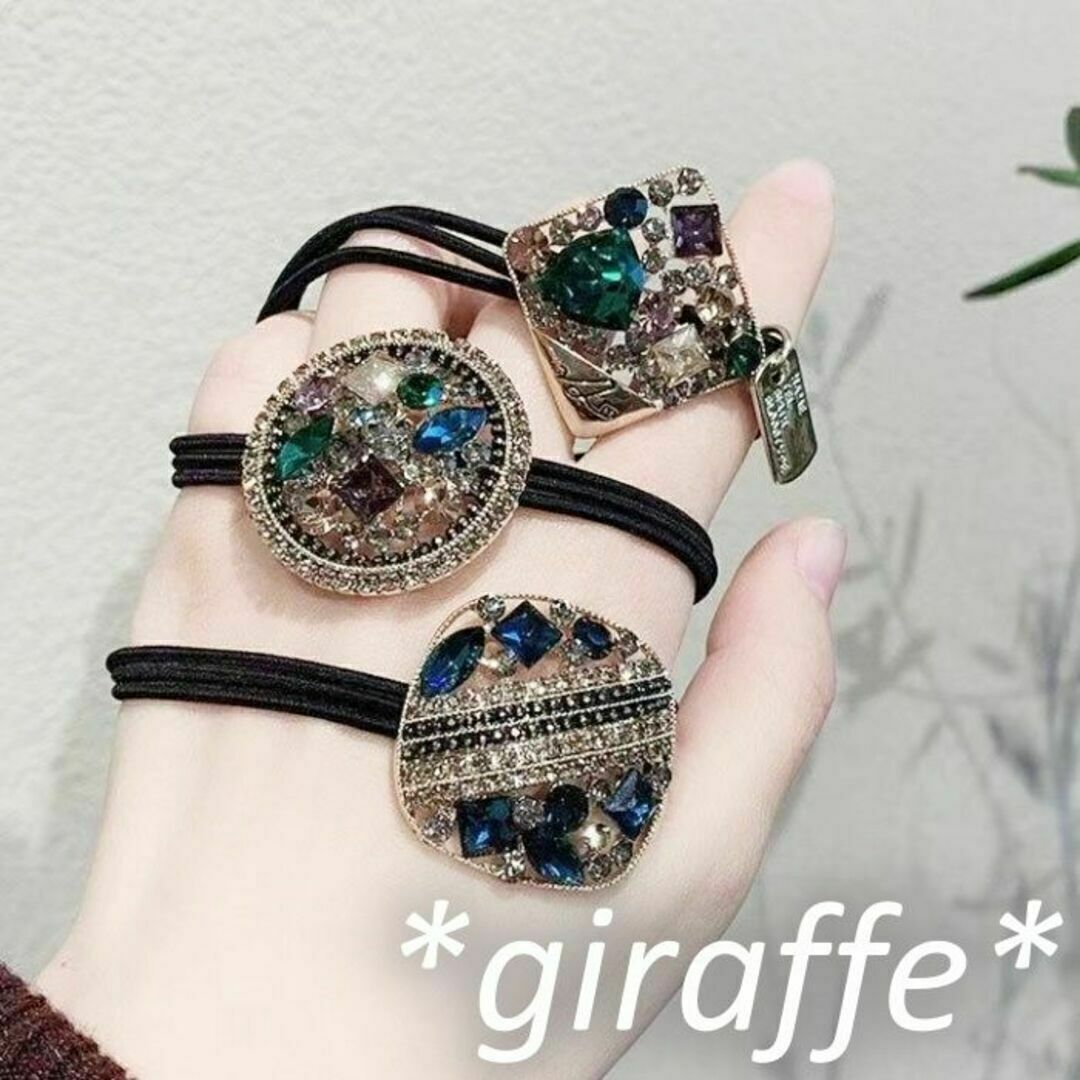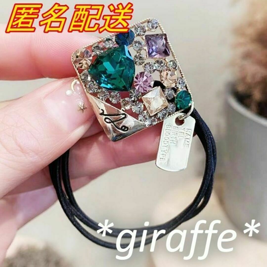 E384 匿名配送 ヘアゴム スクエア モチーフ ゴム 髪ゴム ラインストーン キラキラ 一つ結び ハーフアップ ポニーテール