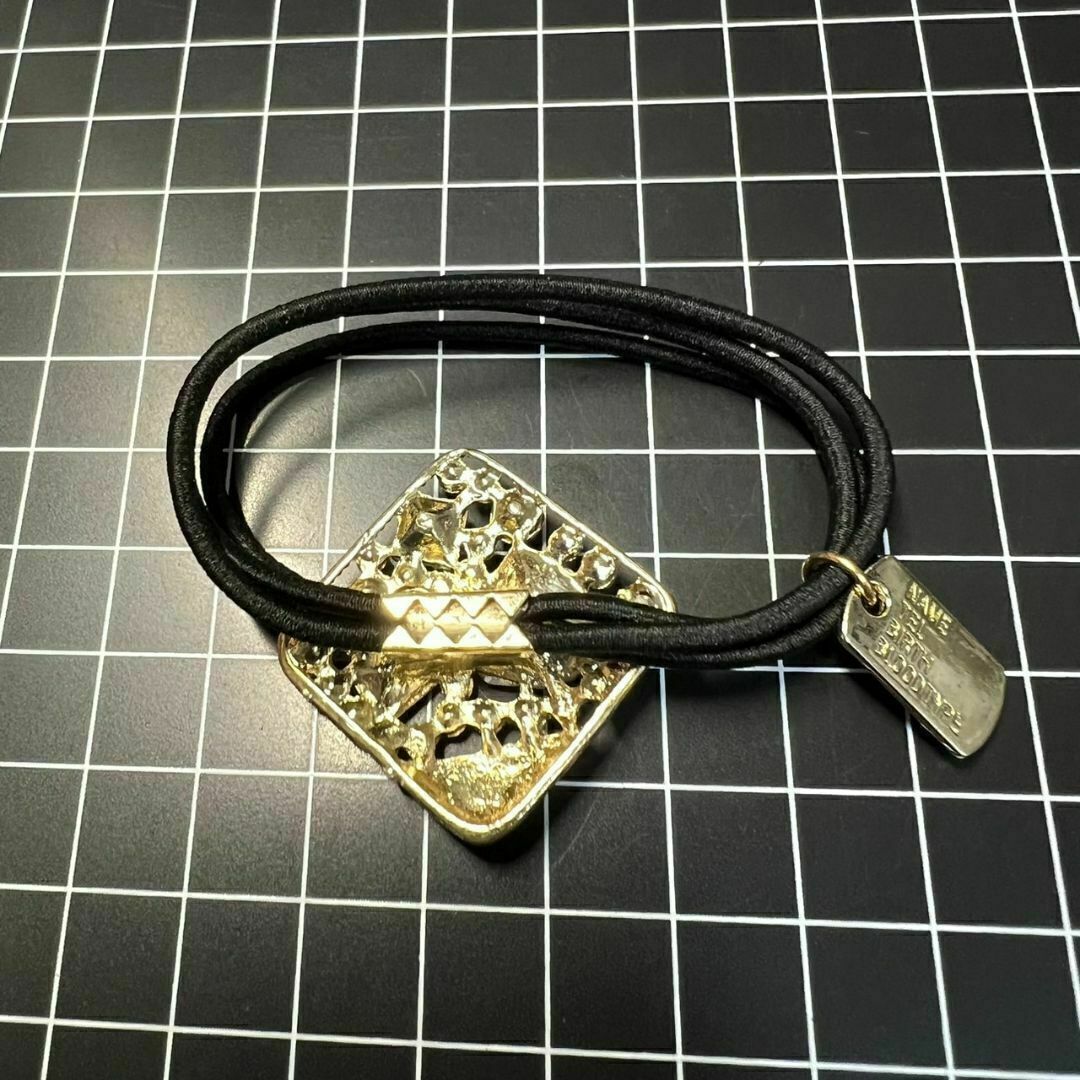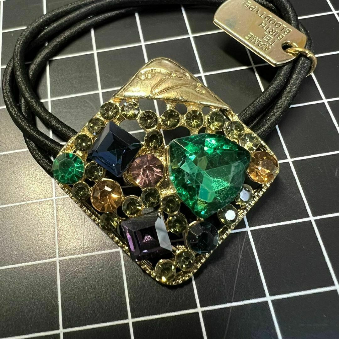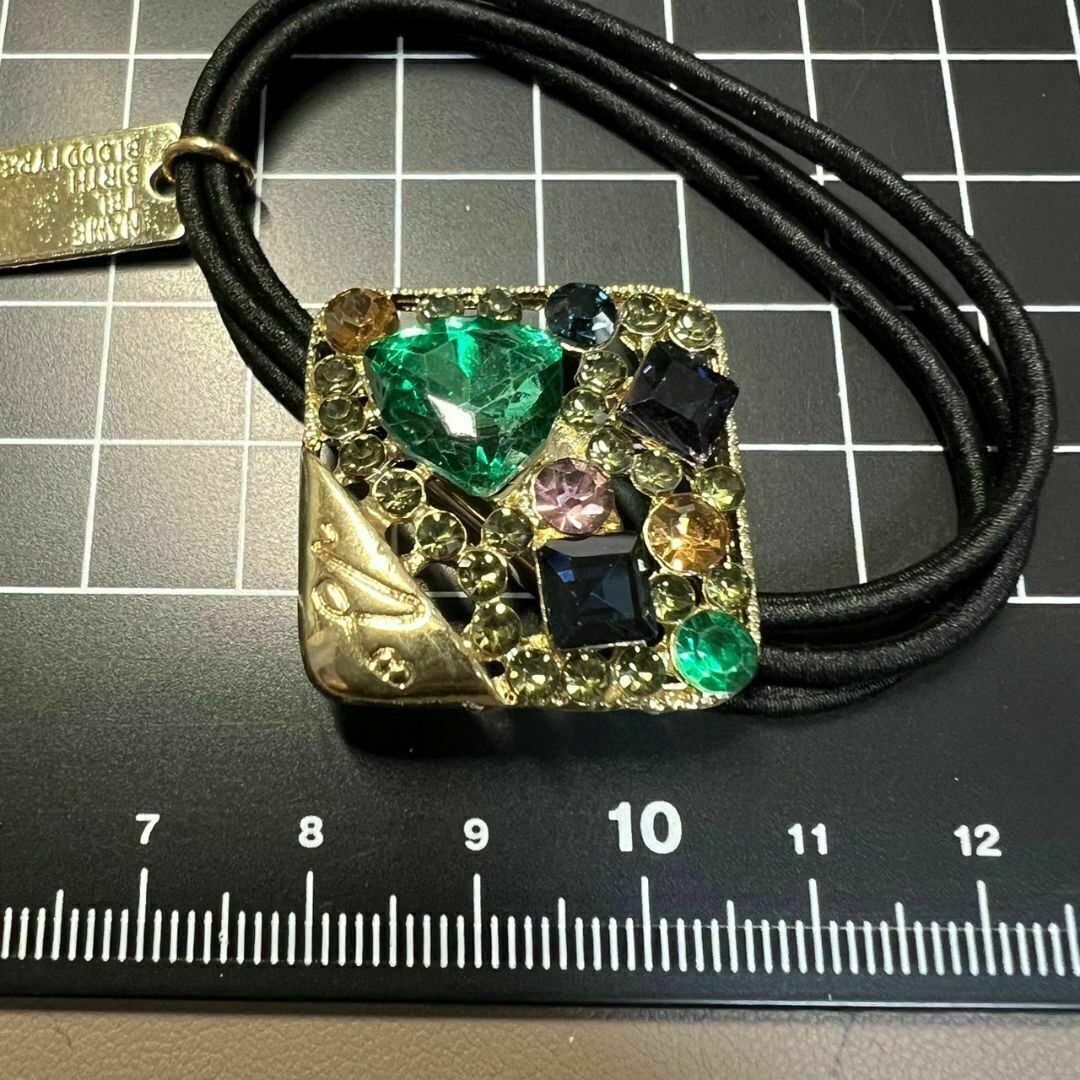 キラキラと輝くカラフルなストーンが綺麗な正方形モチーフのヘアゴムです。