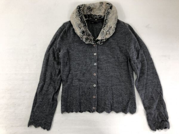 ローラアシュレイ Laura Ashley アメカジ カントリー モード 古着 ファー取り外し可能 カーディガン ジャケット ウール100% S グレー です。