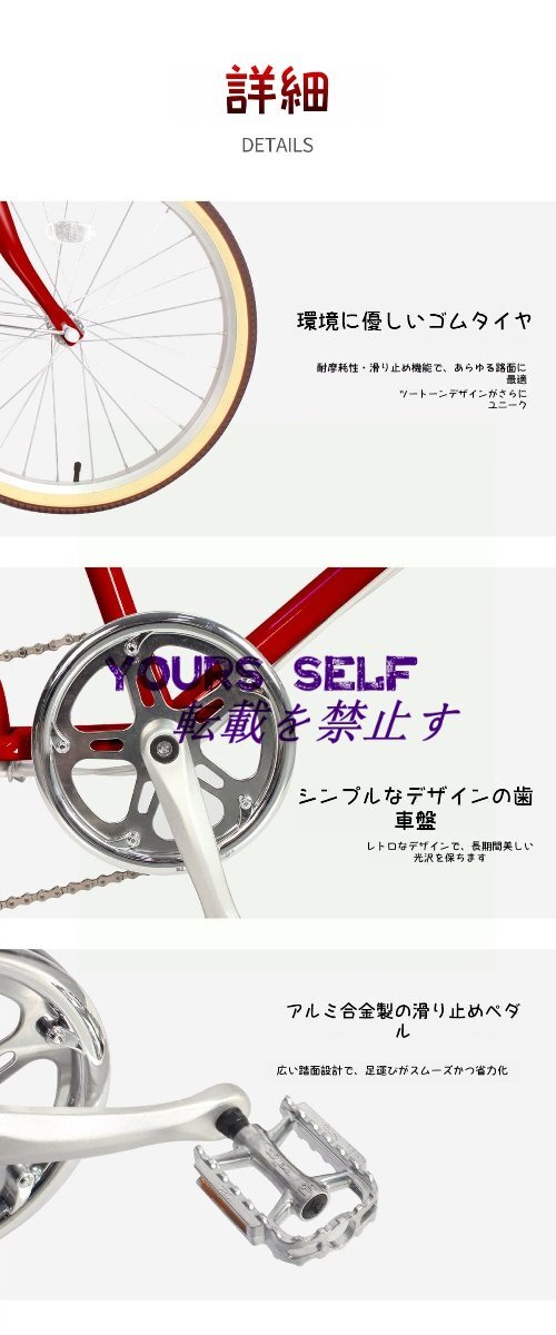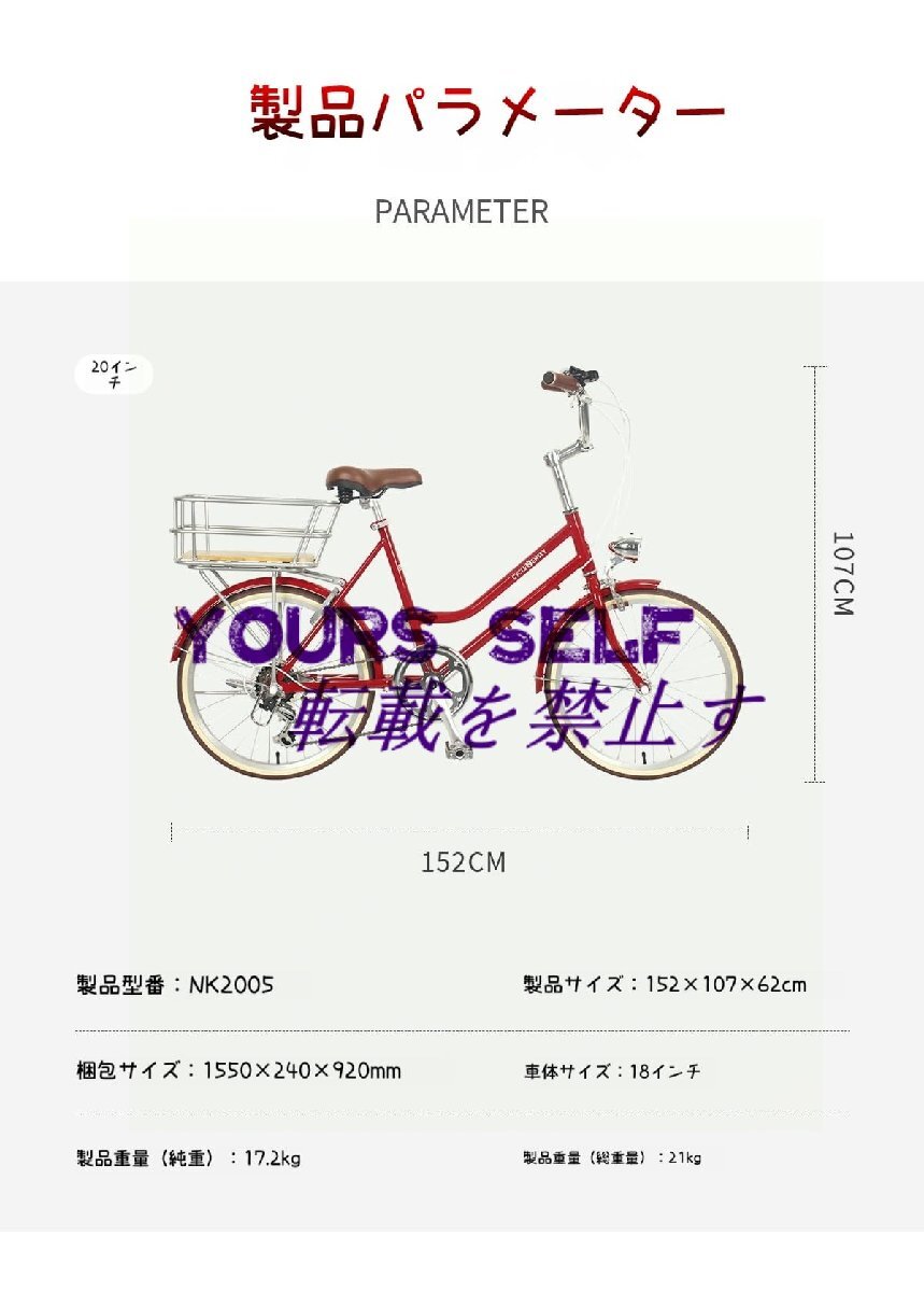 商品の説明 ブランド:WGM 取り付け:95%以上の取り付け完了 ホイールサイズ:20インチ ギア:6段変速 推奨身長:1.58~1.78m フレーム材質:カーボンスチール リムサイズ:20x1.75インチ 商品番号:NK2005-D リム材質:アルミニウム合金 サイズ:20インチ 性別:ユニセックス