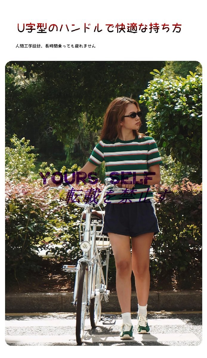 【安定性抜群のセミアップハンドル】ハンドルが手前に曲がっている王道タイプの仕様です。ハンドルが手前に曲がっていることで姿勢が起き上がり、安定した運転が出来る自転車です。