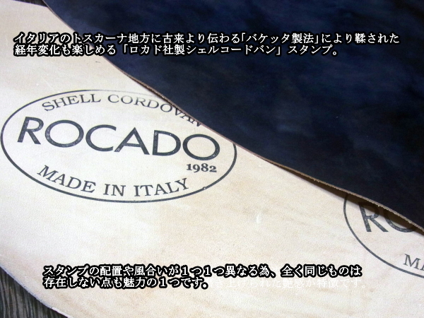 ・付属品:保存用袋、保証書(無償の修理保証期間6ヶ月間)、ロカド社製シェルコードバン専用タグ、イタリア植物タンニン鞣し協会品質保証タグ
