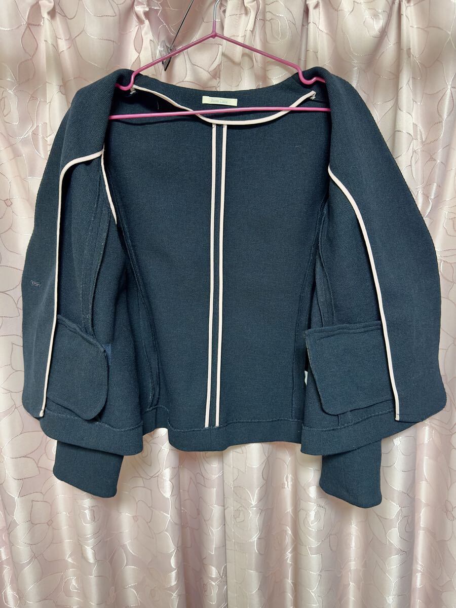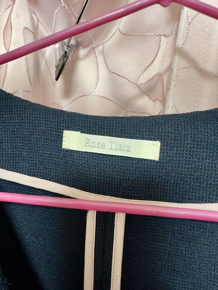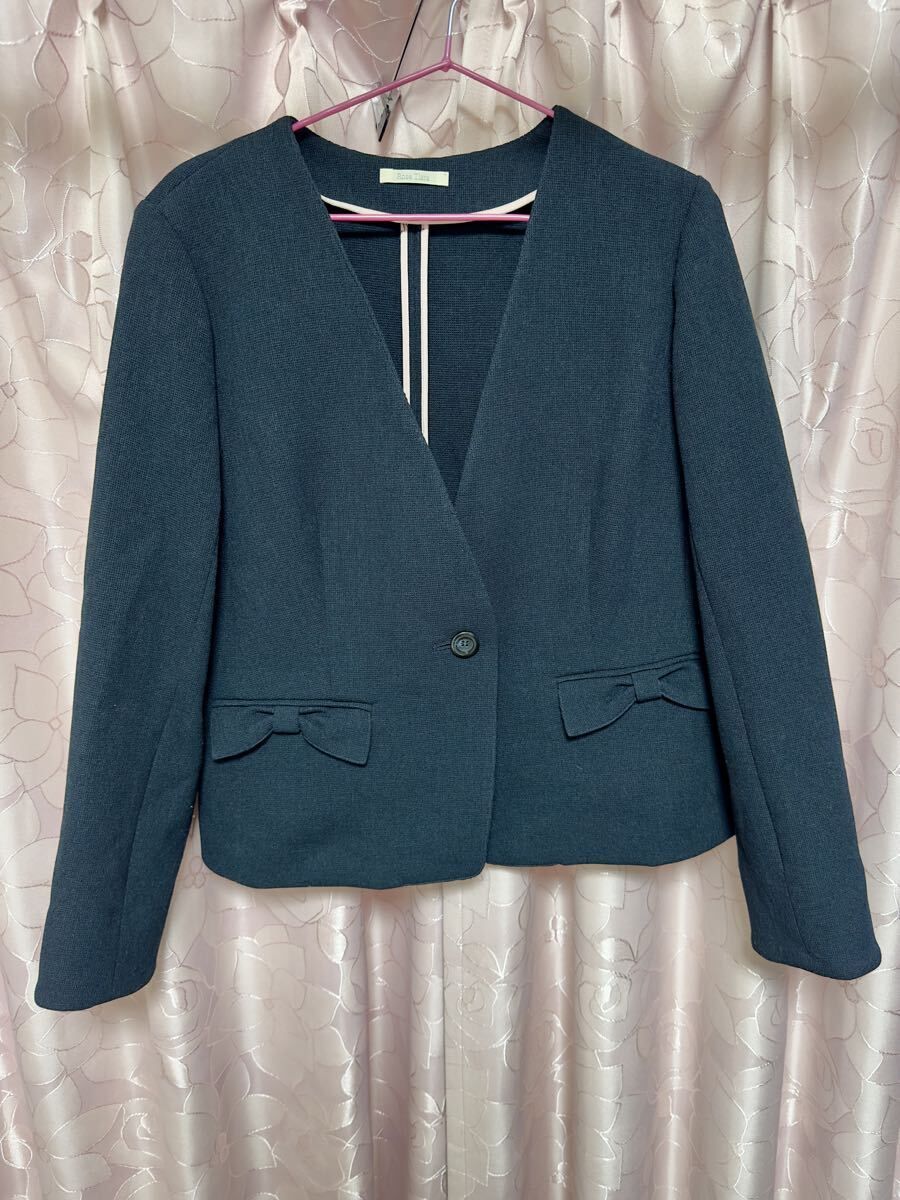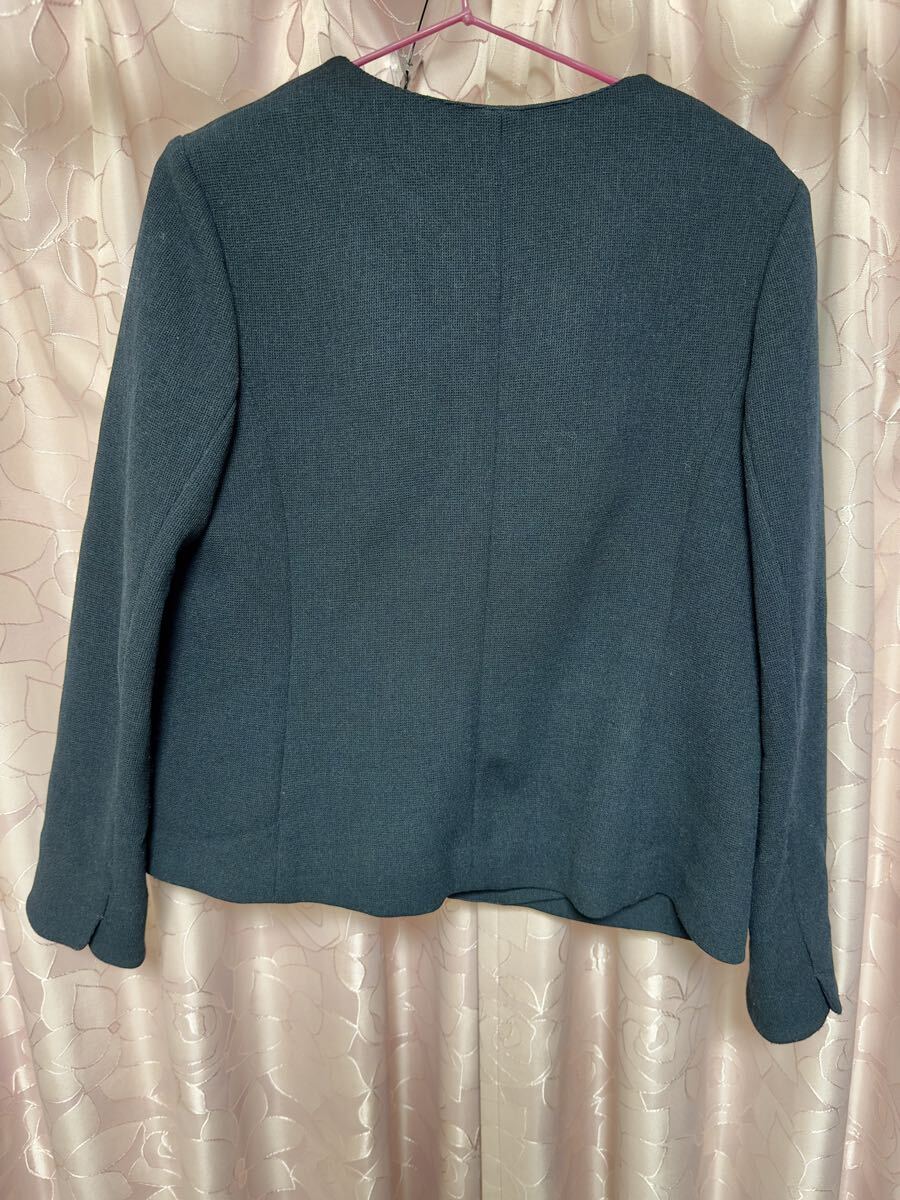 ・Rose Tiara ローズティアラ ノーカラー ジャケット 42 ネイビー