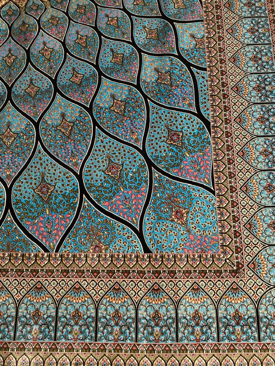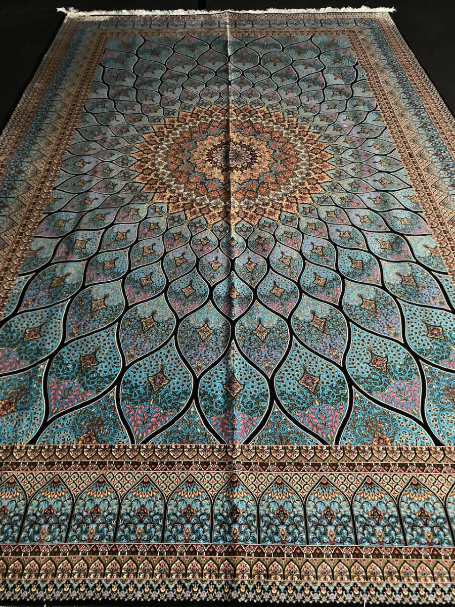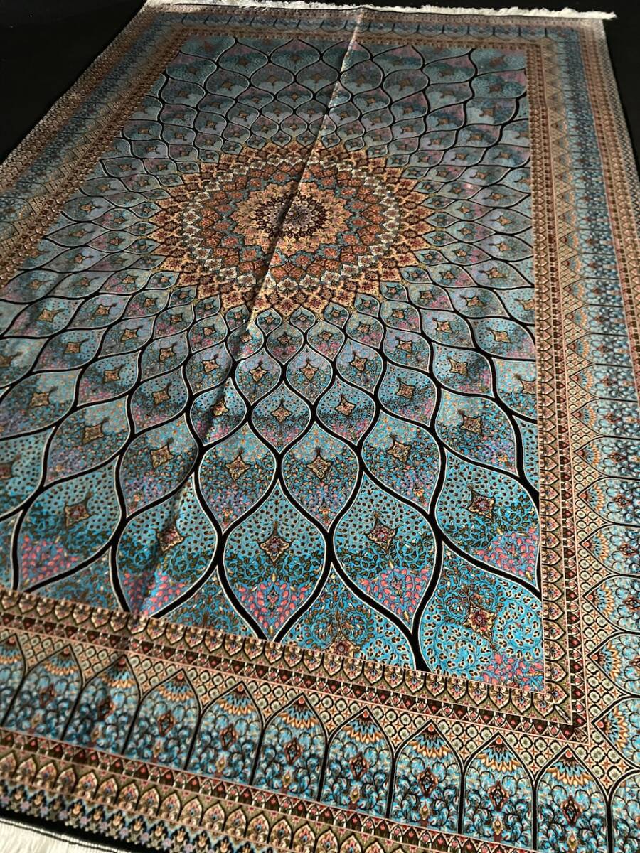 クム絨毯の歴史は1930年頃からと浅く、最初はウール絨毯を、後にシルク絨毯を織るようになりました。絹の産地としても有名なクムで、現在作られるほとんどの絨毯は100%シルク製です。