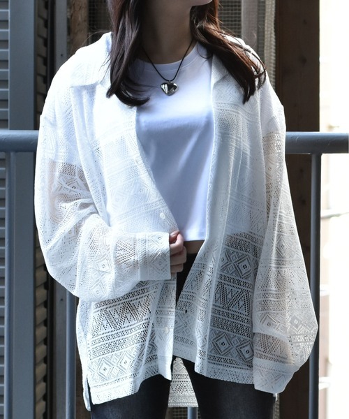 参考商品名:モノトーンレース オープンカラー シアーシャツ