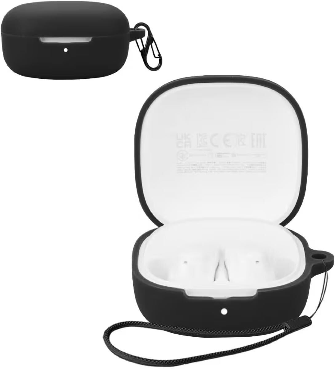 For Xiaomi ワイヤレスイヤホン Redmi buds 6 Play ケース [HVUYAL] 紛失防止用のフックを搭載した 軽量 キズ防止 防塵 傷つきにくい 柔らかなシリカゲルのスポーツクールなデザイン 衝撃 吸収 スリム ソフト ケースカバー 落下防止保護(ブラック)
