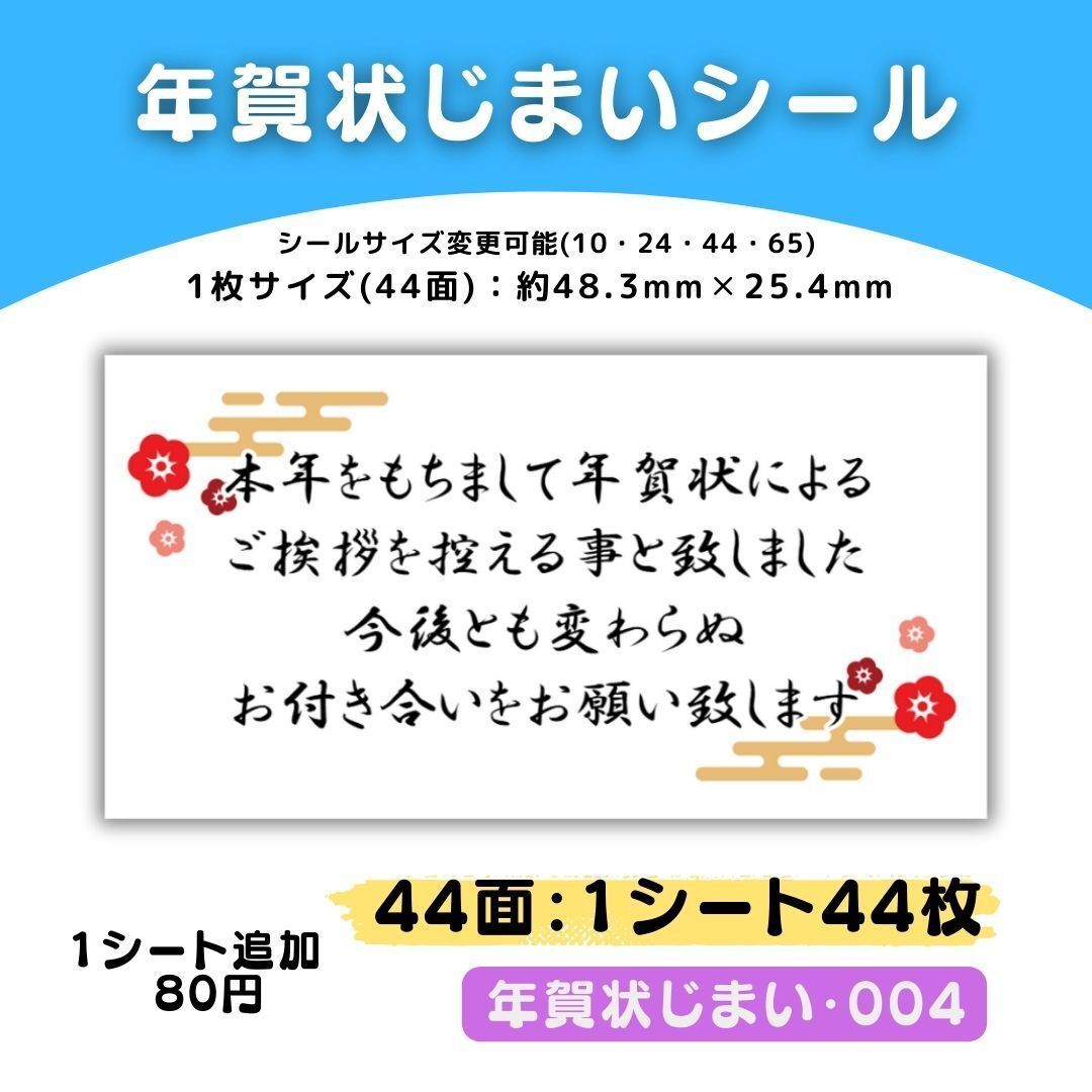 年賀状じまい・004/44面×1シート/ケア 宛名 おまけ サンキューシール