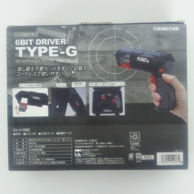 B1518 中古 電動工具 マクロス 電動6ビットドライバー タイプG MEH-79 本体 収納ケース 箱説明書付き 動作確認済み mscros