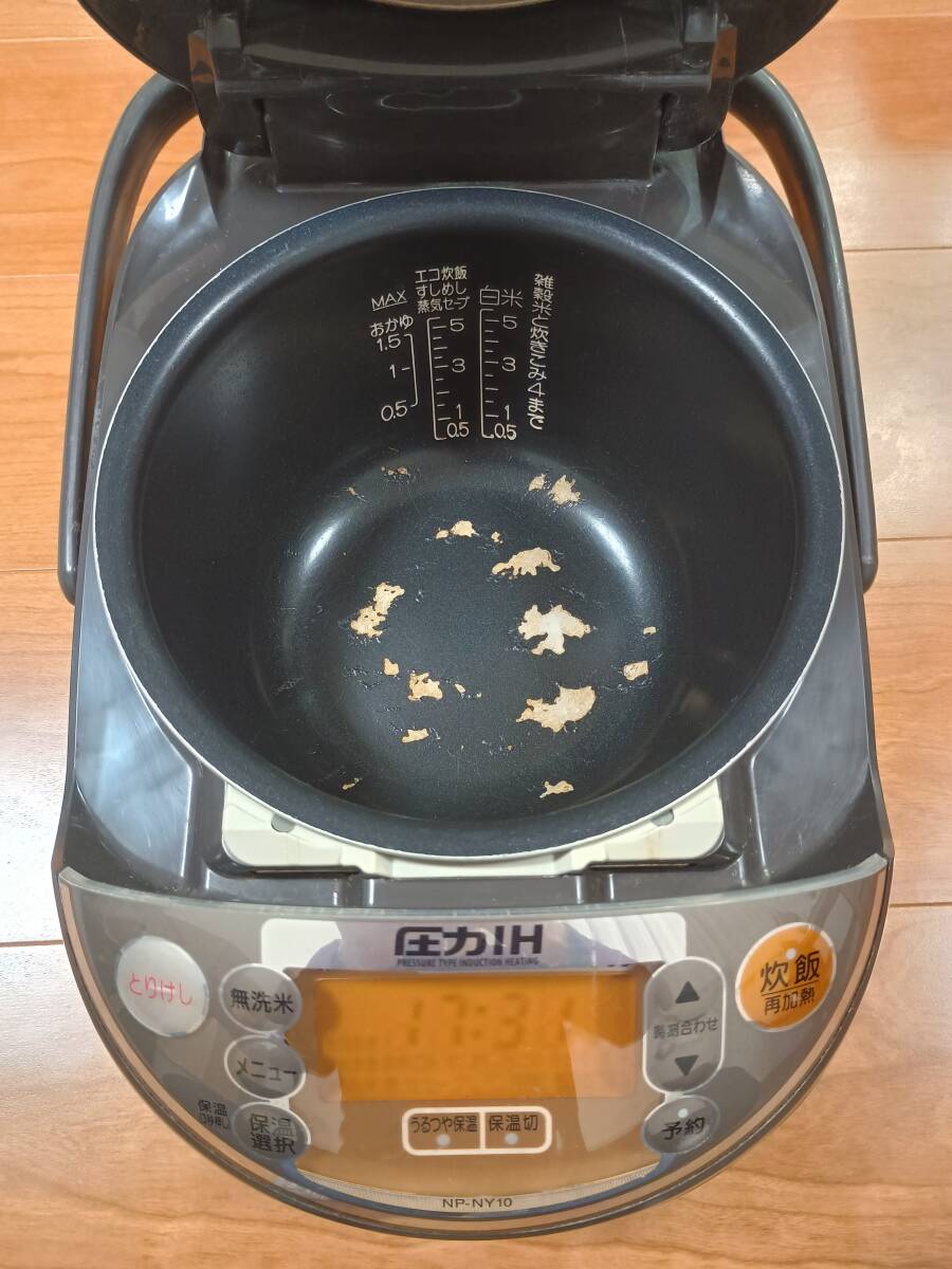 特にコメがこびりつきもなく、ここは炊き上がりに影響はありませんでした。