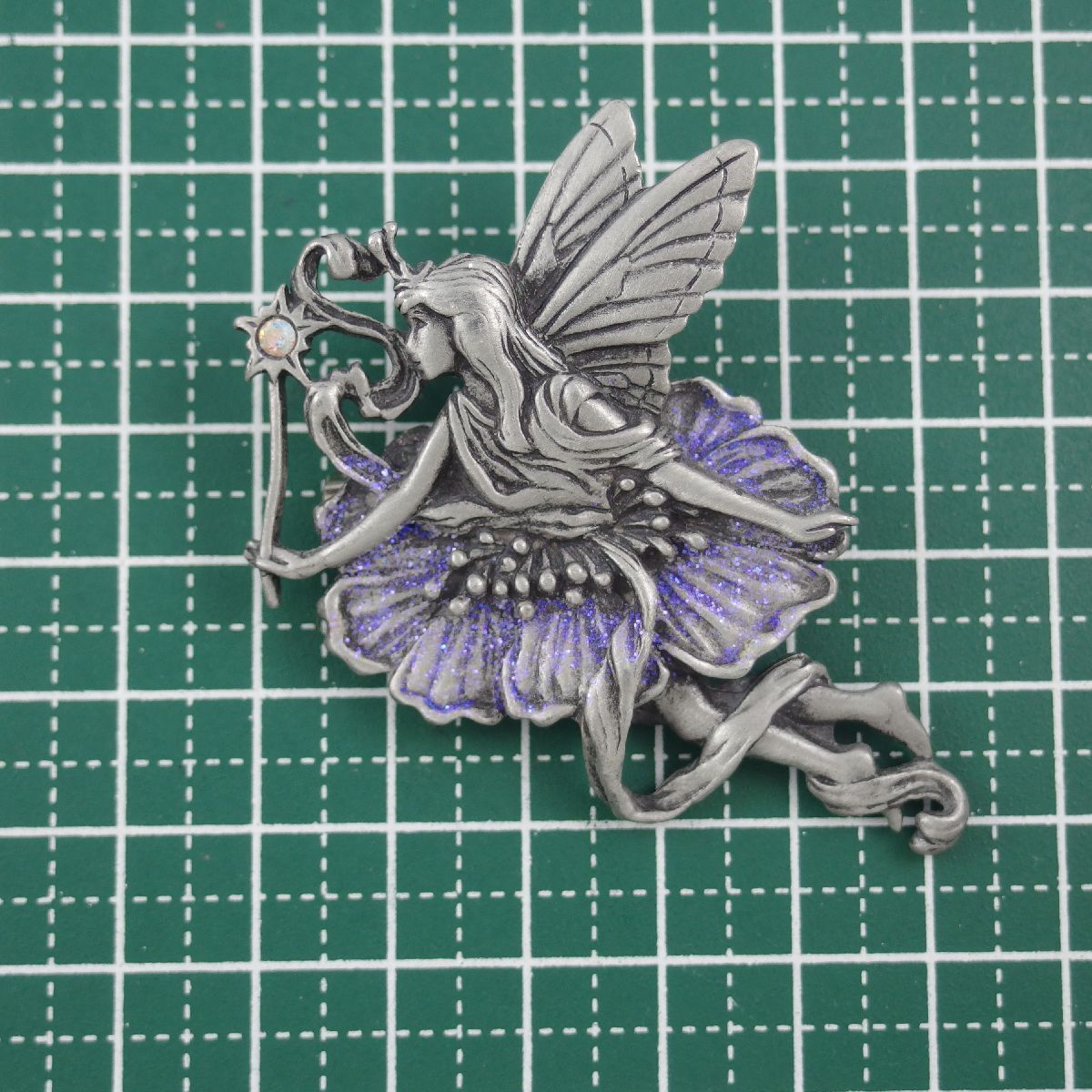 UK4371◆【JJ】◆ フェアリーモチーフ 妖精 エンジェル 天使 星の杖 ピューター製 ◆ ヴィンテージブローチ ◆