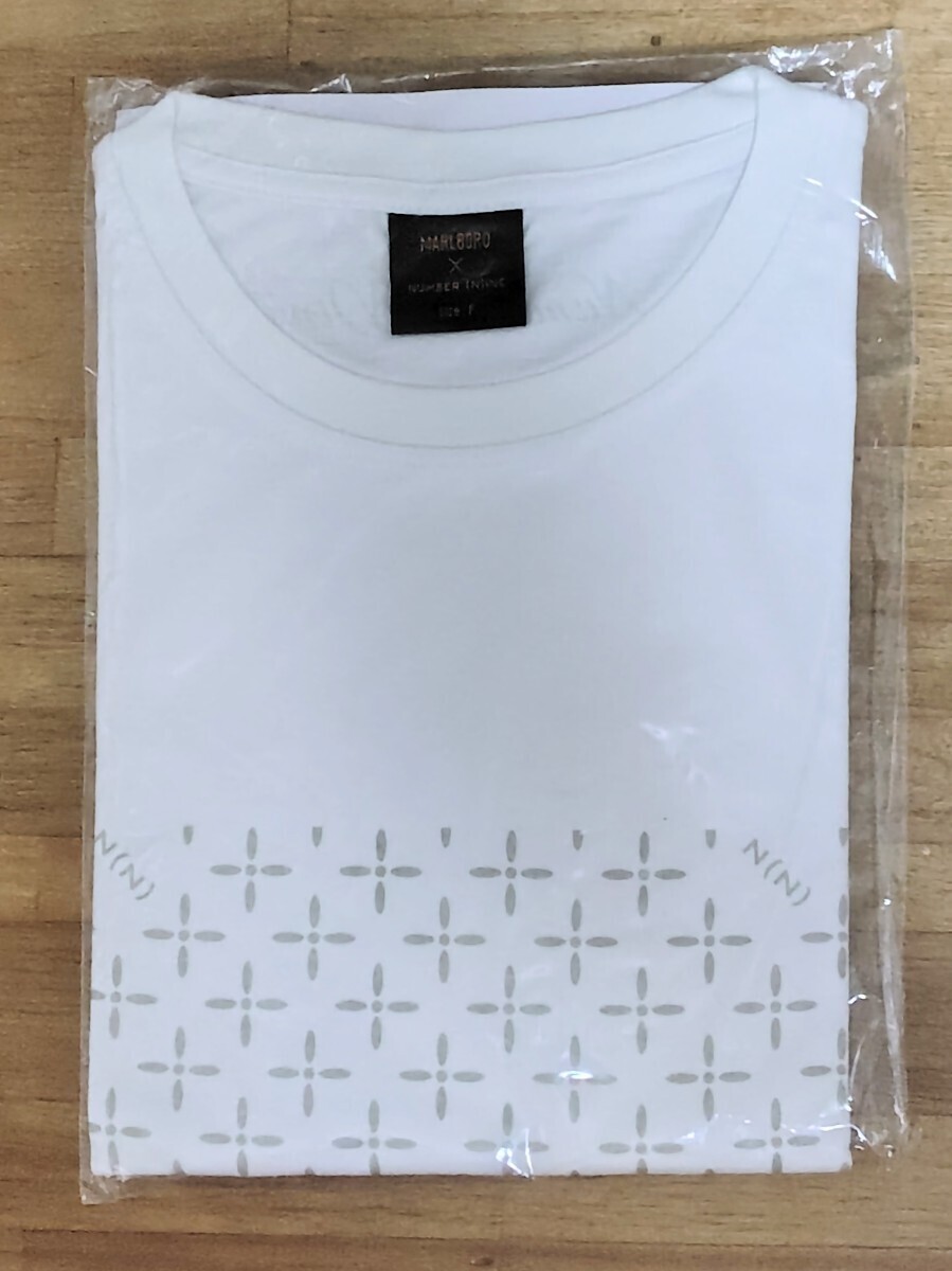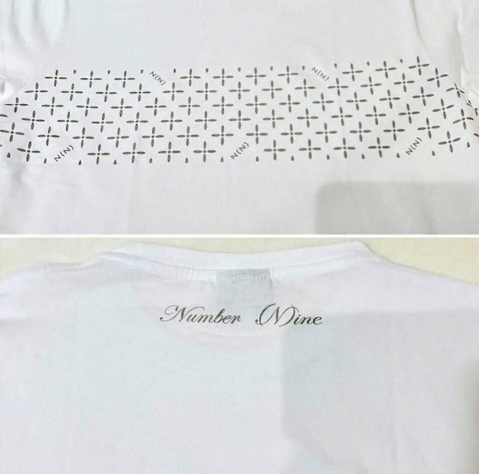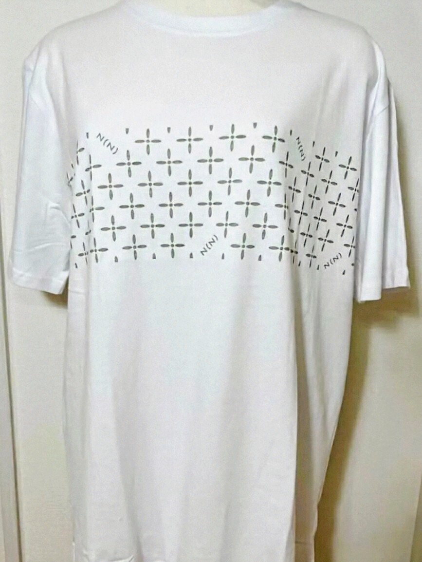 前面に「N(N)」のパターンプリントが施された、綿100%のTシャツ。