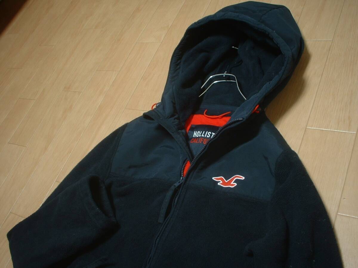 HOLLISTERデナリフリースジャケットS(JPN-M程)濃紺ネイビー正規ホリスターCALIFORNIAボアジップパーカーOUTDOORアウトドアアバクロ