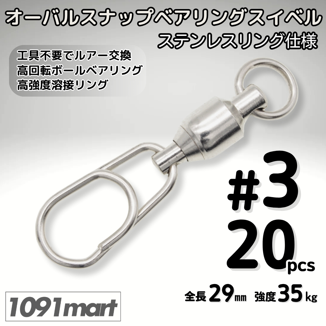 オーバルスナップベアリングスイベル #3 20個セット ステンレス製溶接リング ジギング  青物 オーシャンスナップタイプ【1091mart】