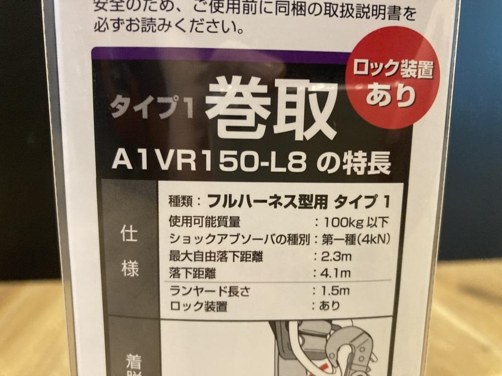 タジマ ■商品名 ハーネス用ランヤード ■型番 A1VR150-L8 |