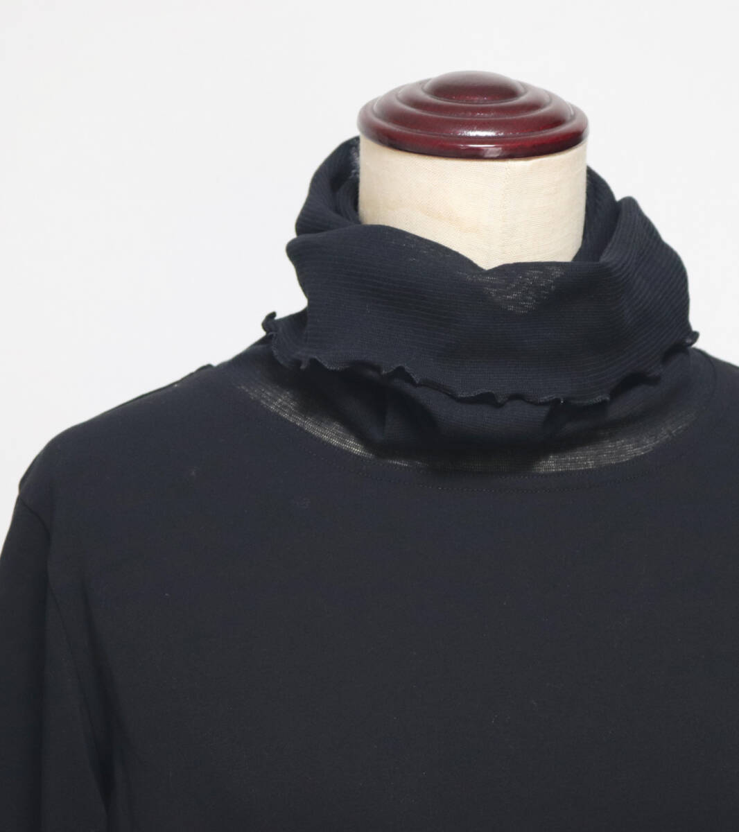 | 22,000円新品タグ付き【芽風 めふう センソユニコ】ストレッチ 首シフォン生地 タートル カットソー 黒 38 v7745-7009 |