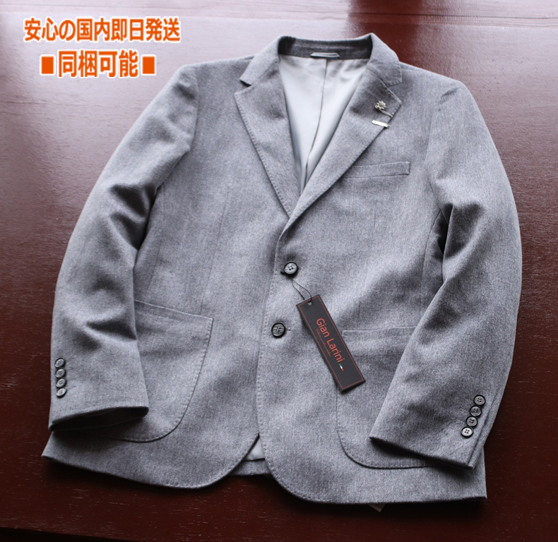 新品■高級セレブGIANLARINI50*カシミヤ ウール60% テーラードジャケット L グレー◆メンズ 軽量 ブレザー 秋冬 ジャケット ビジネス 杢調