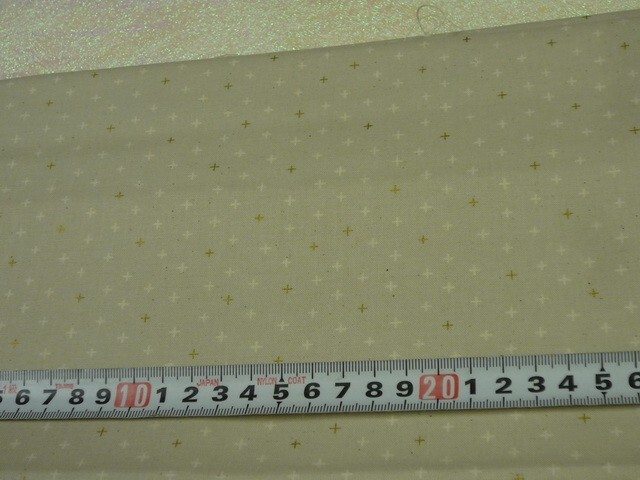 100*50★サンドベージュ・金・??柄の・ハギレ・生地・布★0541-54