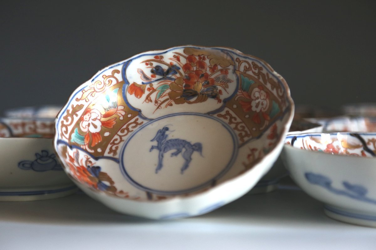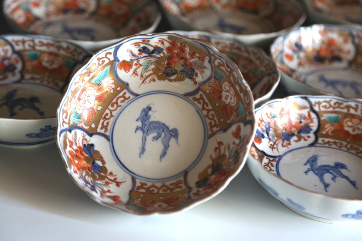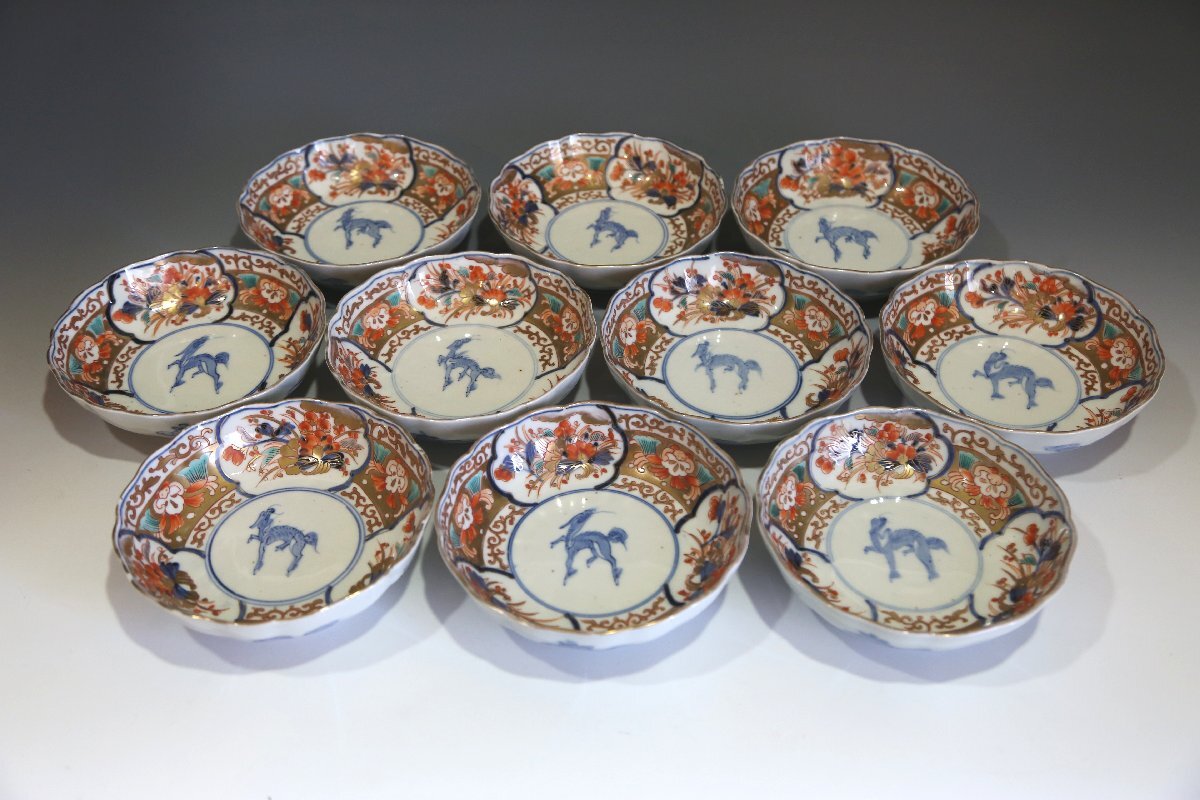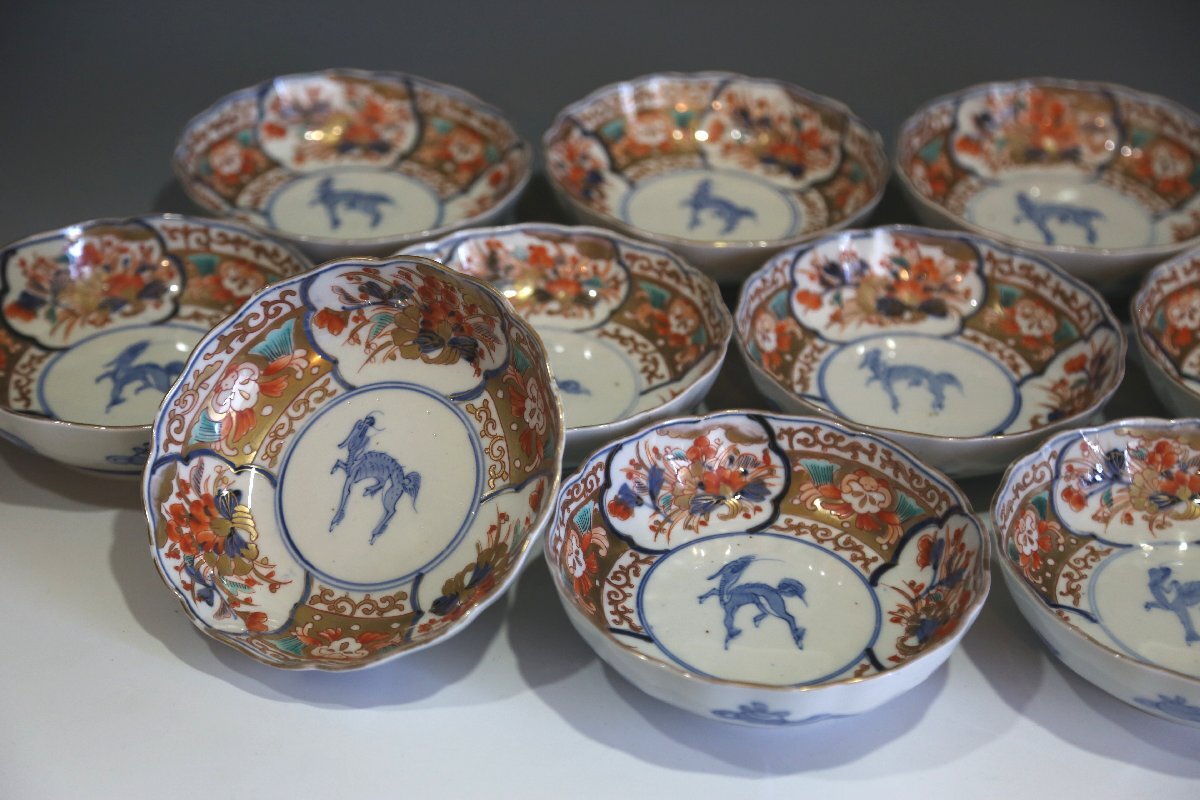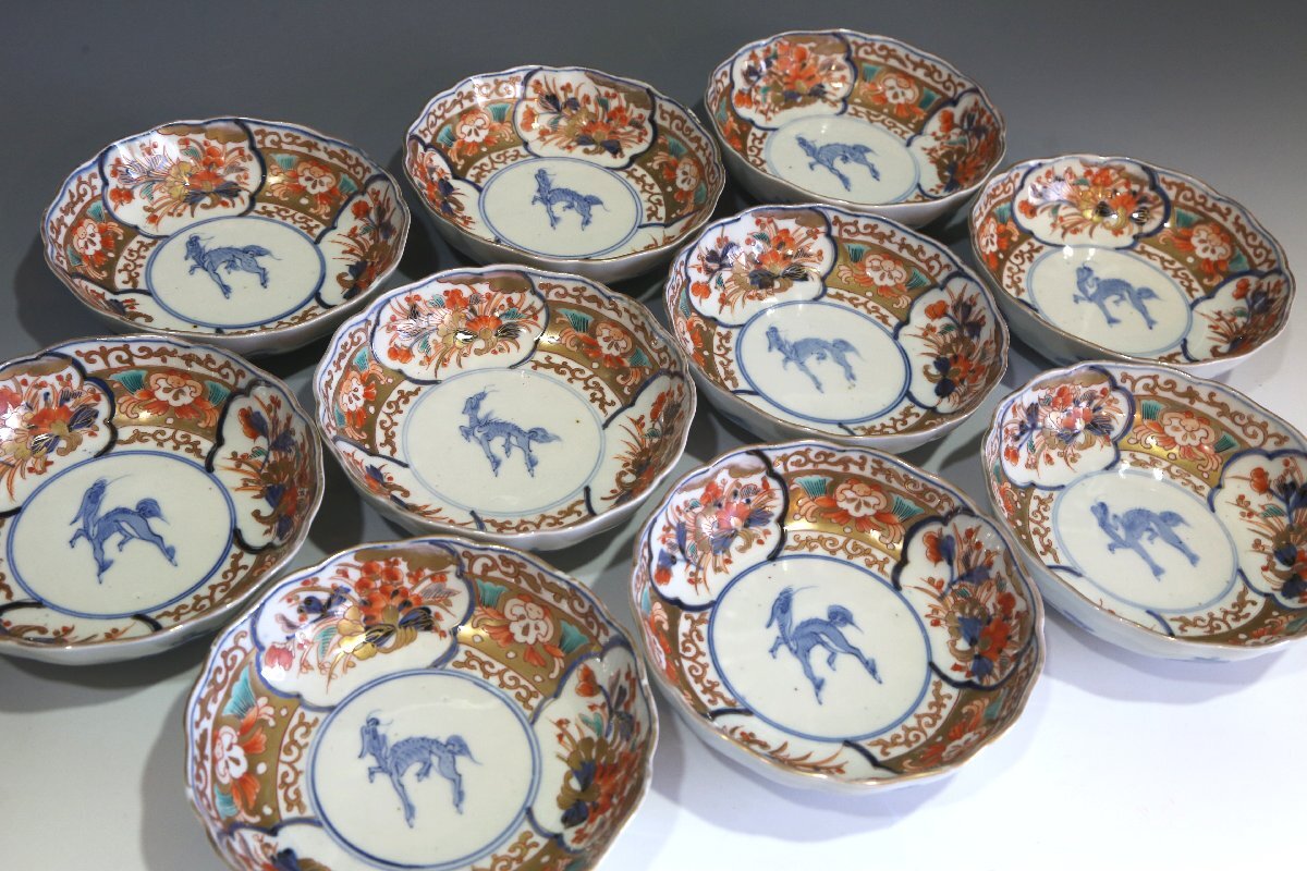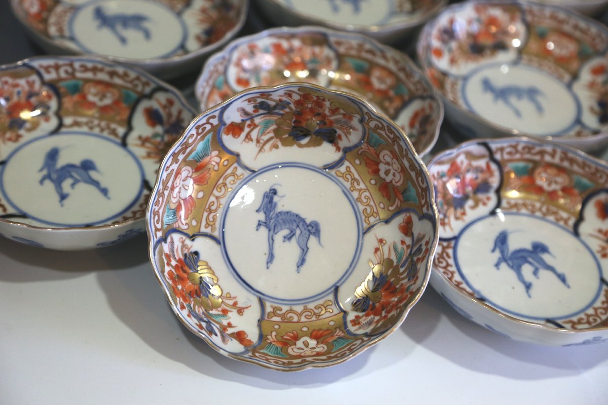 ★★★ 明治期 伊万里焼 色絵 麒麟図 膾皿 10客 ★★★ 93