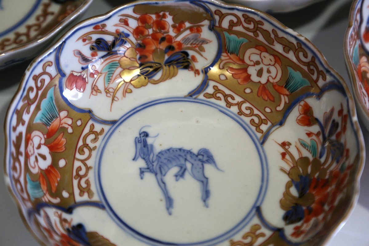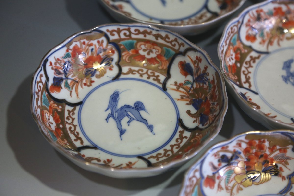 ★★★ 明治期 伊万里焼 色絵 麒麟図 膾皿 10客 ★★★