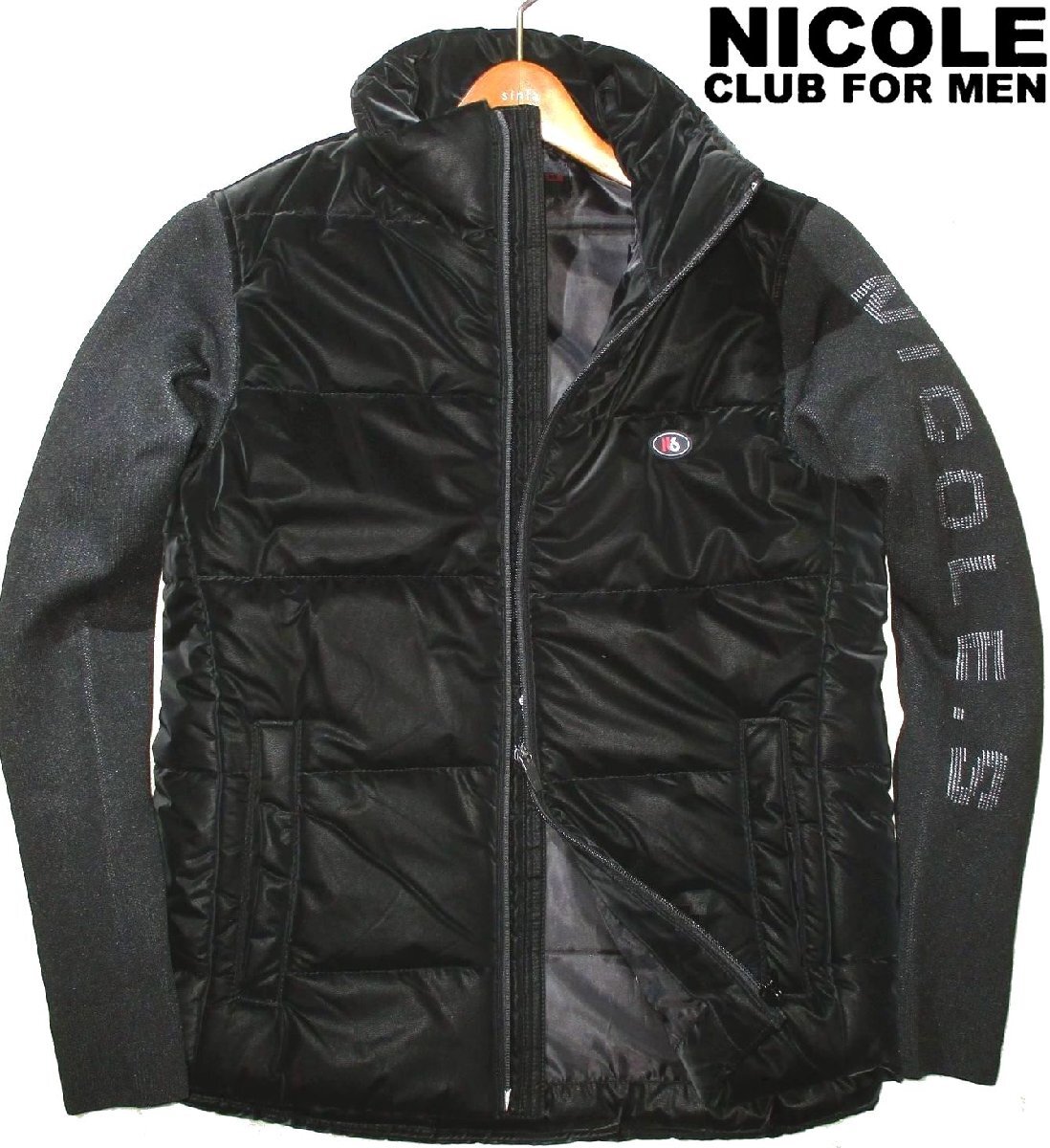 新品 秋冬物 L 定価2.4万▼ ニコル NICOLE CLUB FOR MEN ゴルフ ダウン調 中綿入り ブルゾン 袖ニット 防風 蓄熱 ジャケット メンズ 48 黒