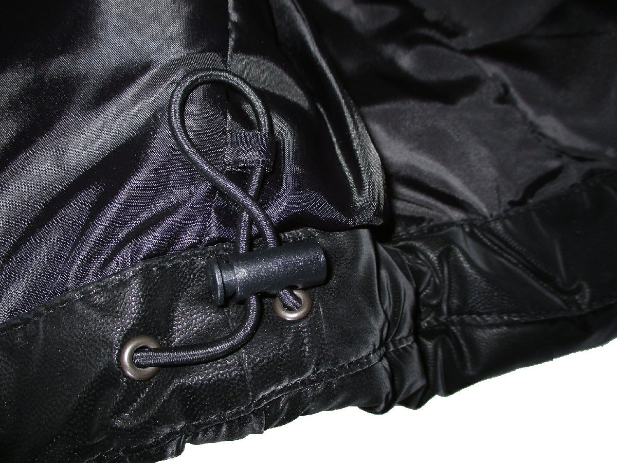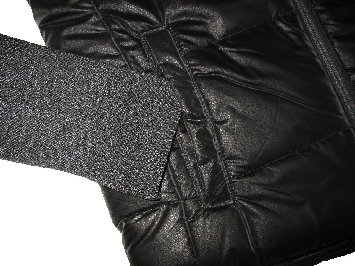 ※ボディ部分(合成皮革)に関しまして・・・ごく普通のダウンジャケット生地に比べると生地厚は2倍ほどで丈夫感があり生地表面にはレザー特有の細かな風合いが型押しされています。また通常の本革やフェイクレザーとは違う質感で、厚さは1/5程度でかなり軽量です(見た目は少しレザーっぽく、使用感は軽量ダウンジャケットに近い)。