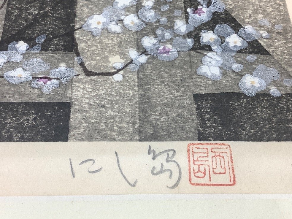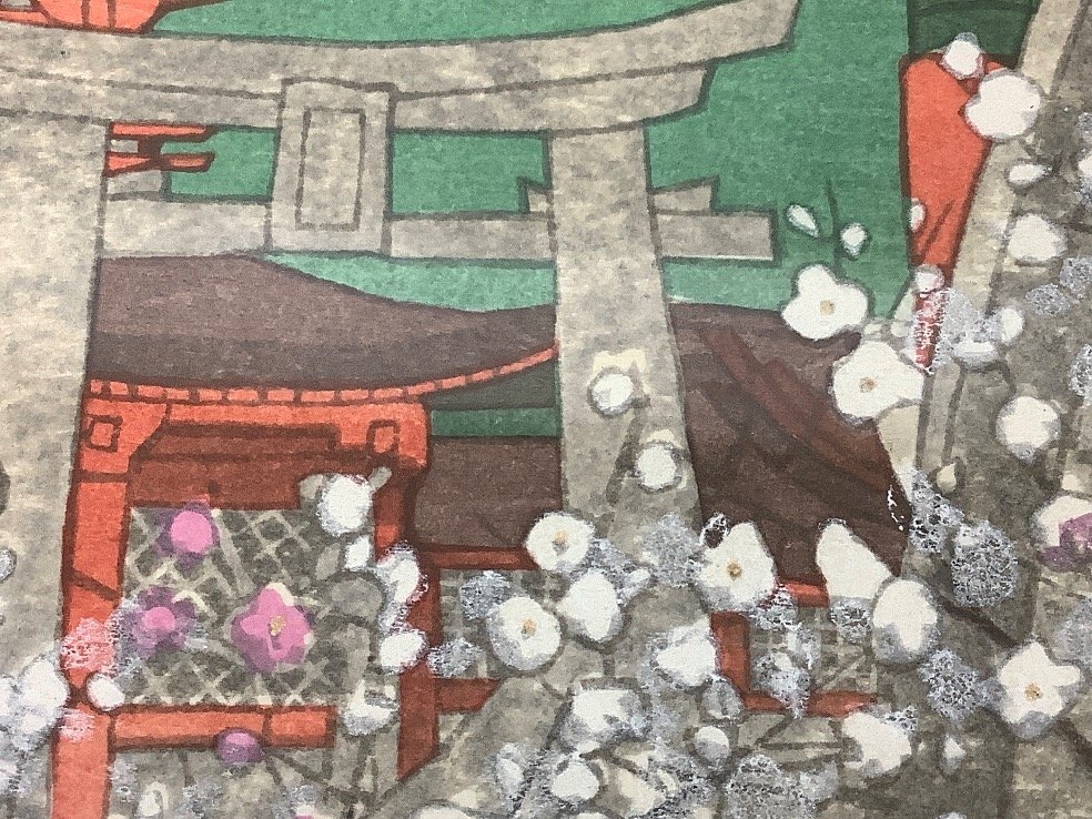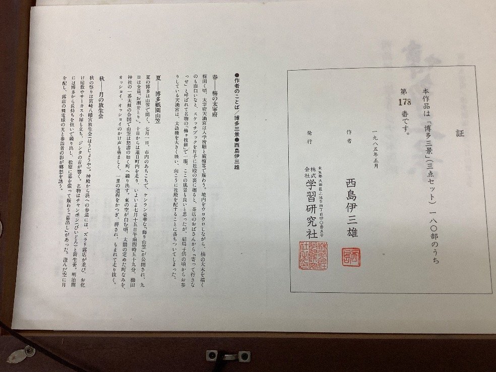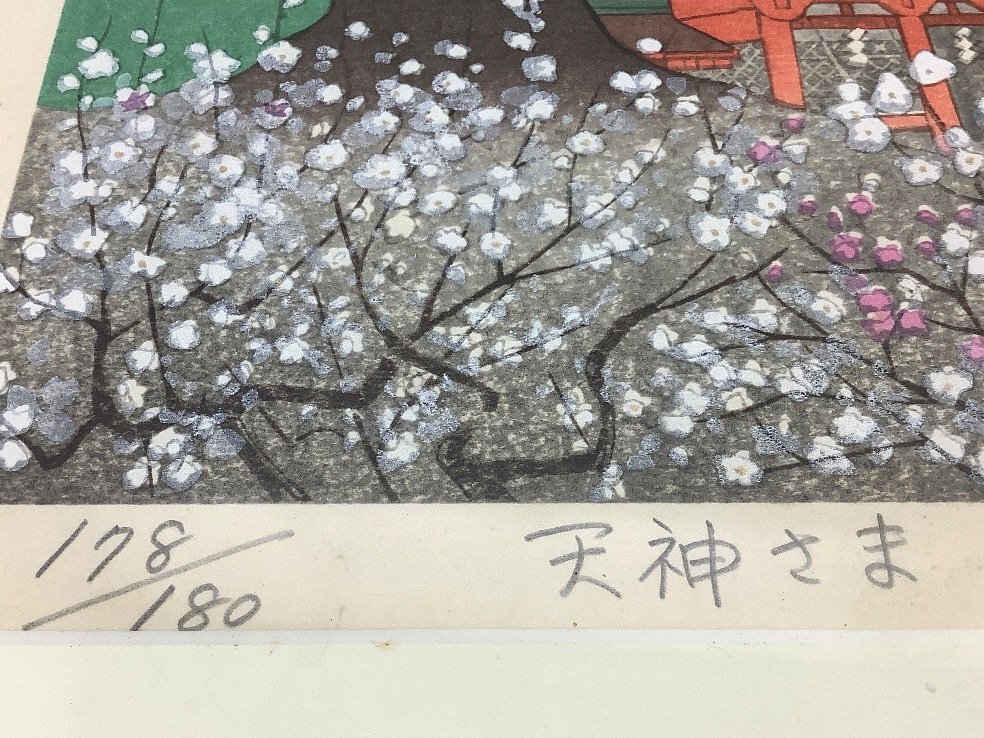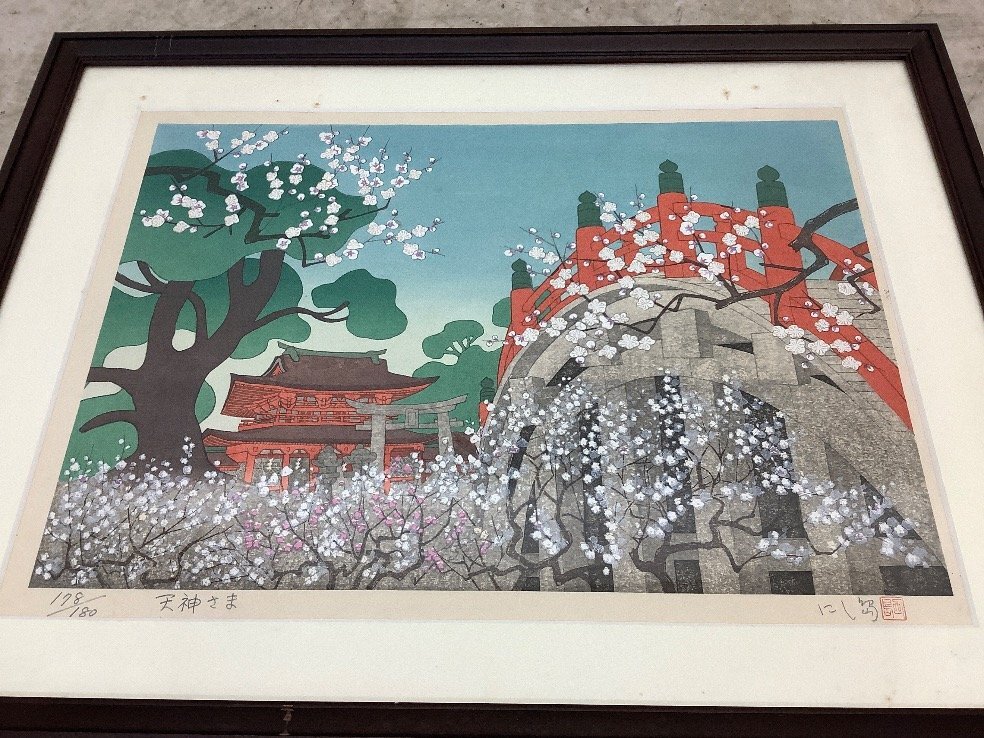 西島伊三雄 「天神さま」/博多三景/木版画/額装 額傷等有 学習研究社証明書付/ACB 中古品
