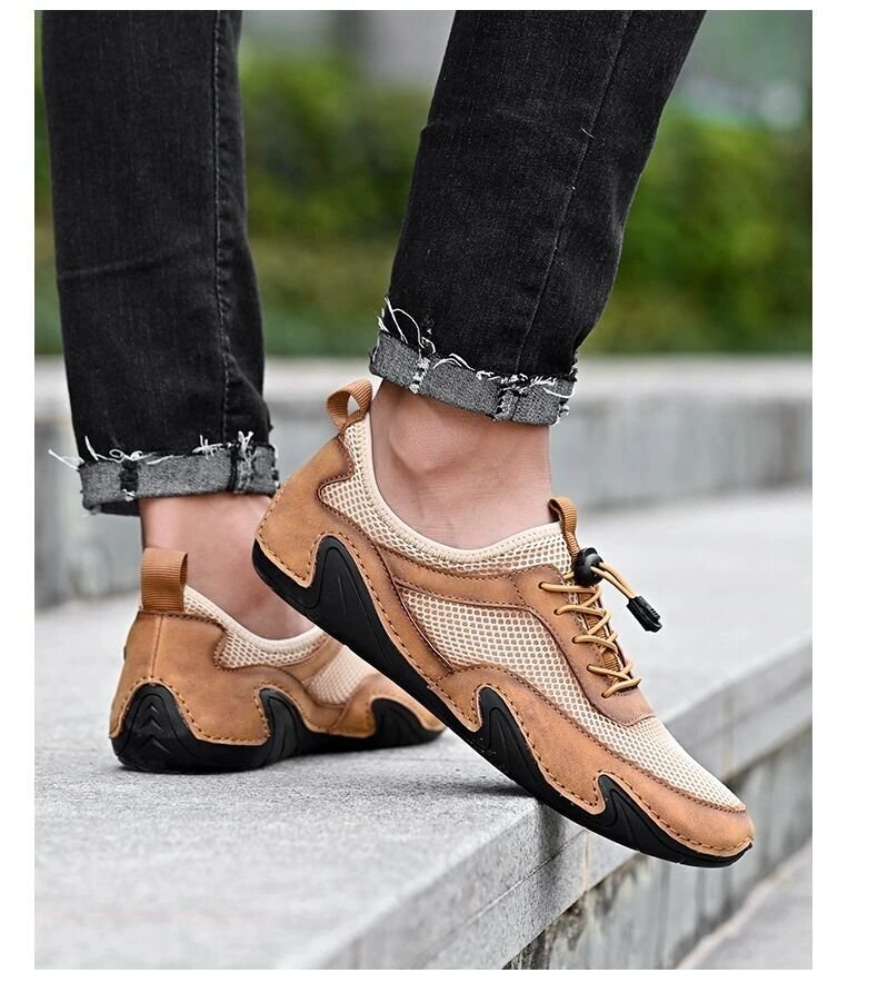 XX-8812茶/47 春夏秋 本革 靴 防滑 耐磨 撥水 通気性 強い弾力性 ドライビングシューズ登山靴 運動靴 38-48選択 ピンク