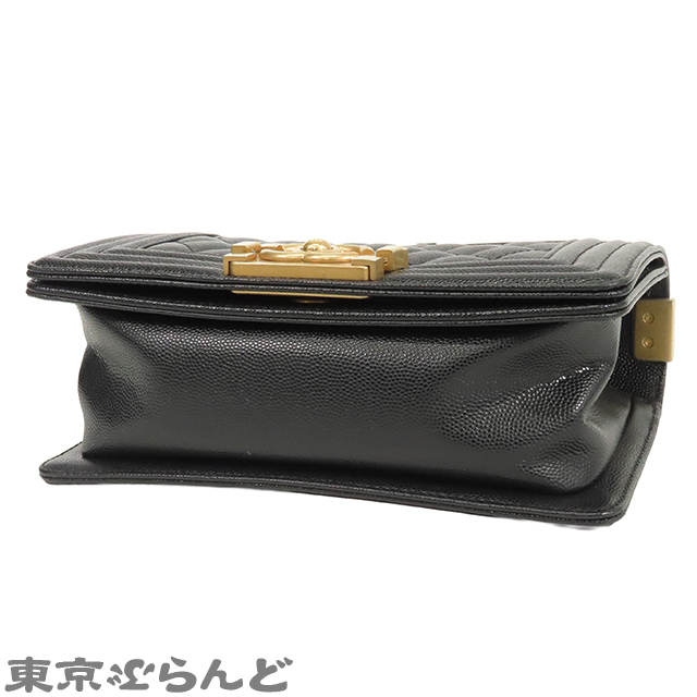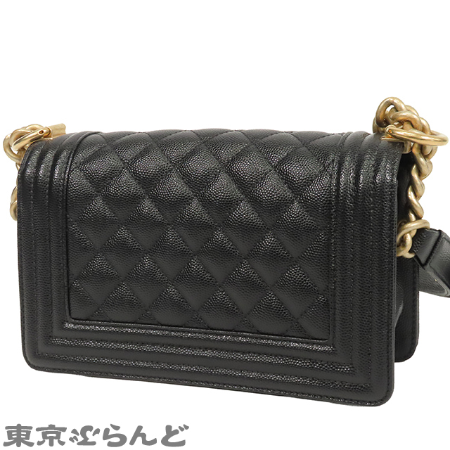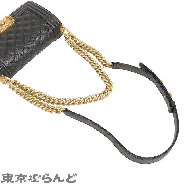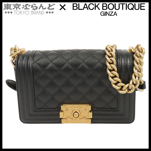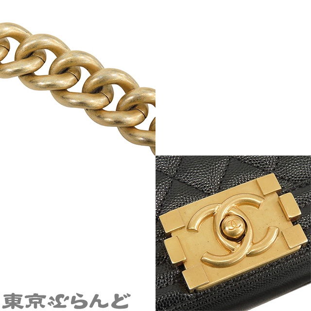 101808129 シャネル CHANEL ボーイシャネル スモール チェーン ショルダーバッグ A67085 黒 ゴールド金具 キャビアスキン 20cm レディース