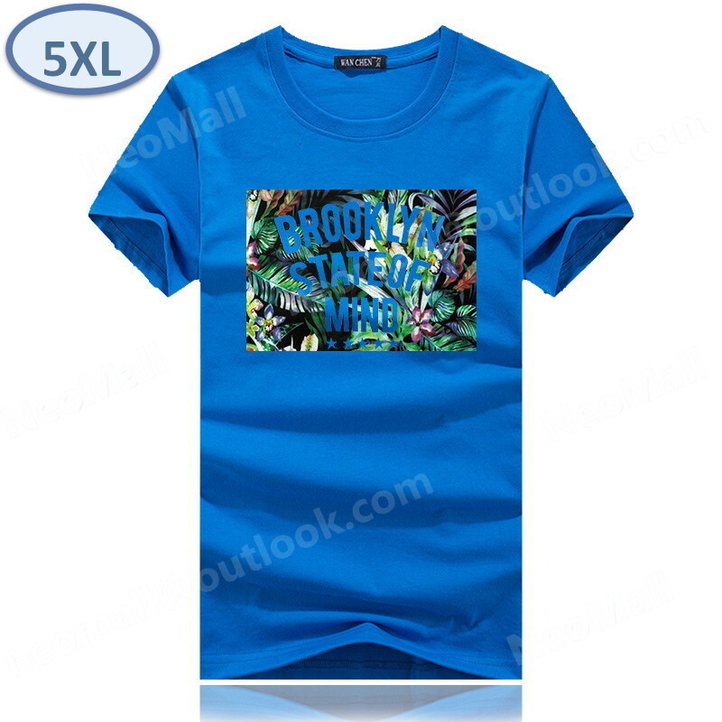 夏にピッタリ ☆ 丸首 半袖 Tシャツ【074】 ブルー 5XLサイズ トップス シャツ シンプル イラスト プリント 春夏