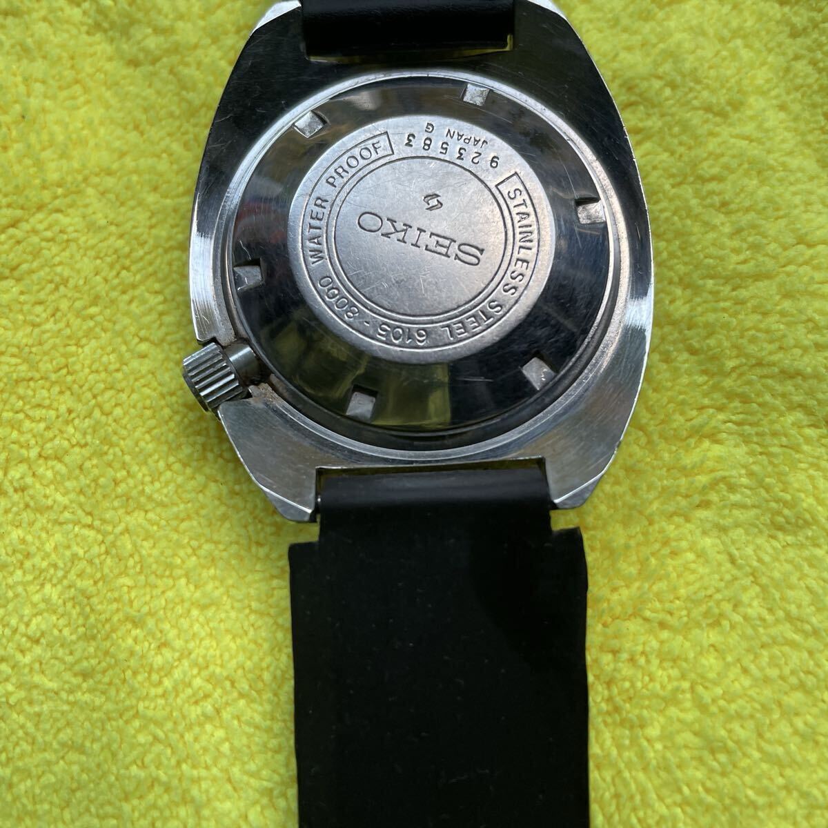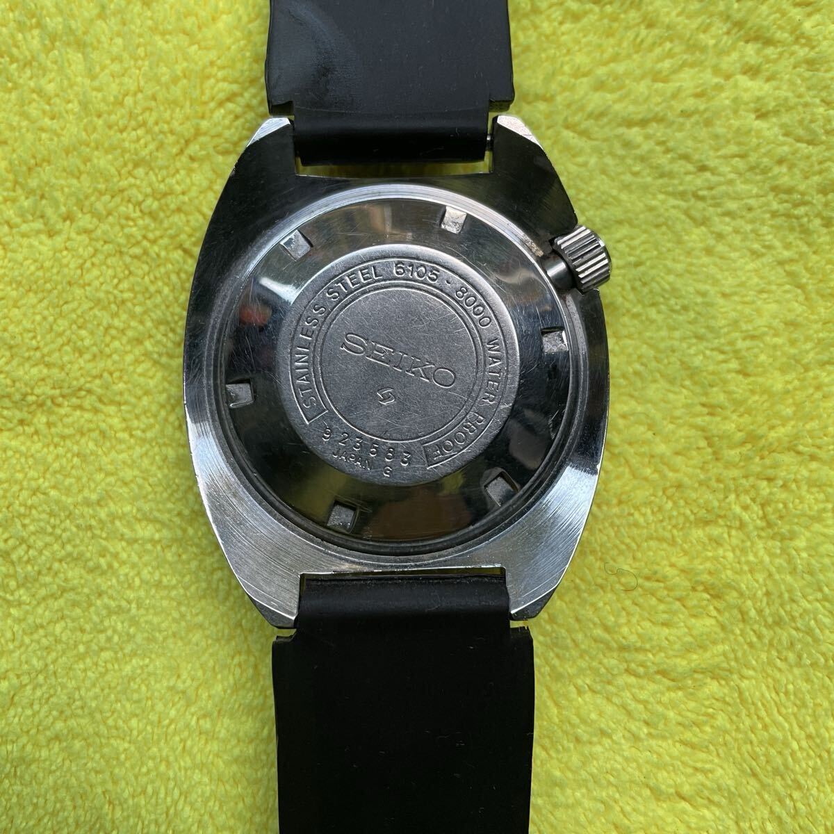 ご覧下さいましてありがとうございます、稼動品SEIKO セイコーセカンドダイバー6105-8000AUTOMATIC.WATER.150M.RESIST.自動巻きデイト黒文字盤です。 出品時稼動してました、ガラス面擦り傷や汚れなどあるかと思われます、あくまで現状品ということで画像にて詳細な状態のご確認、ご判断頂き、ご自身でのメンテナンスを前提としてご入札をお願い致します。最近落札後まったく連絡の無い落札者さんがいます、商品落札後24時間までに連絡していただける方もしくは48時間以内に決済していただける方よろしくお願いします。