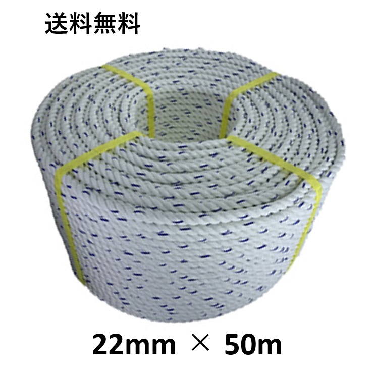 送料無料 スパンエステルロープ エステルスパンロープ 22mm×50m 綱引きロープ 三つ打ち ロープ 線入