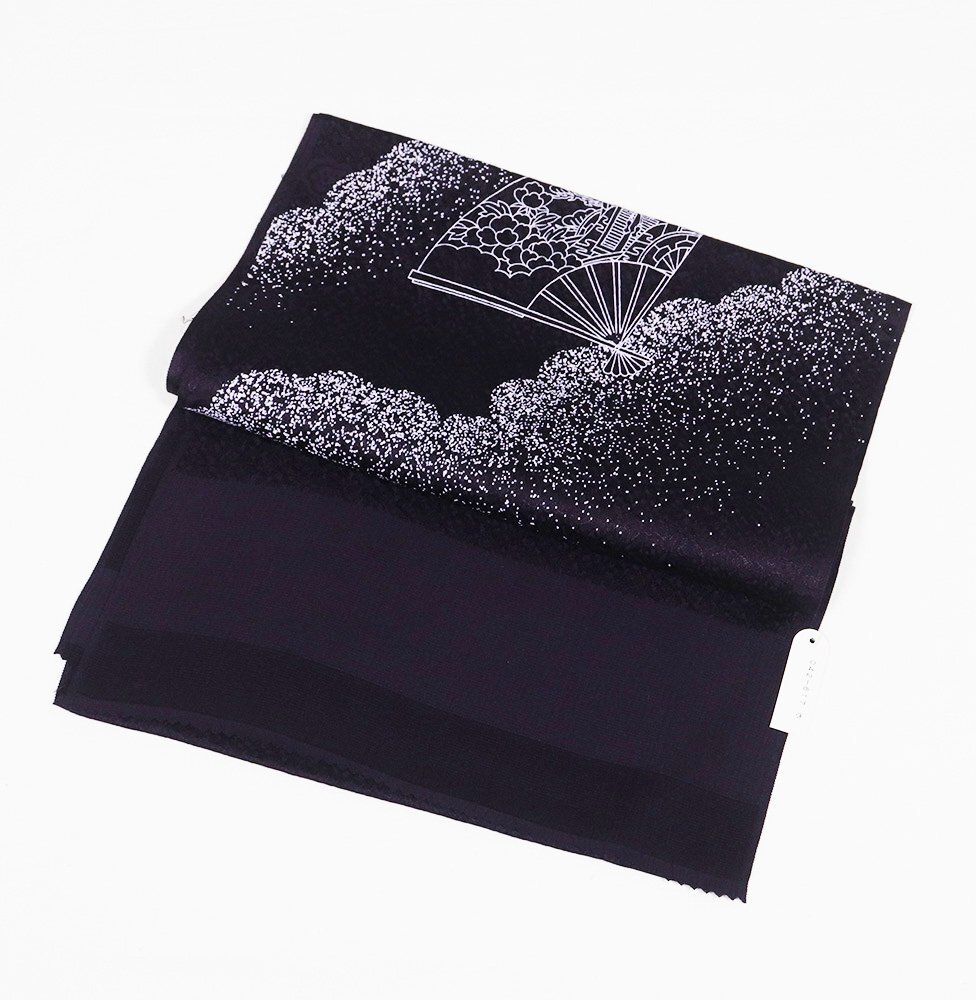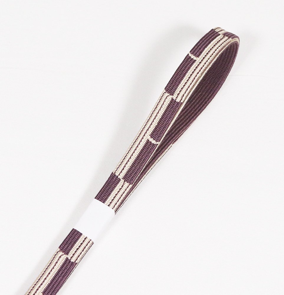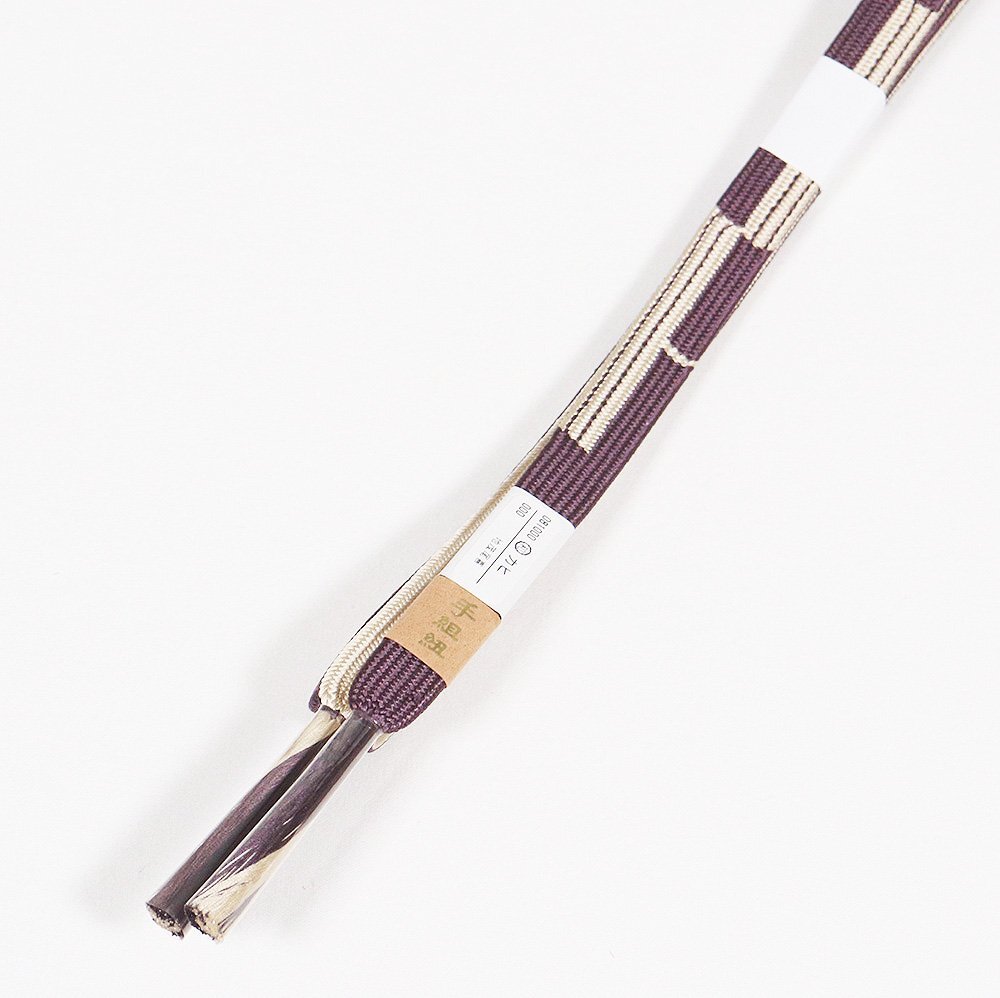 | お洒落着訪問着用 帯締めと友禅帯揚げのセット 新品 帯揚げ 濃紺紫地檜扇 帯締め 手組紐 平 紫・ベージュ地短冊縞 新品 |