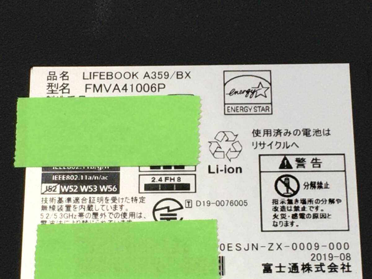 【記憶媒体無】FUJITSU/ノート/第8世代Core i3/メモリ8GB/WEBカメラ有/OS無