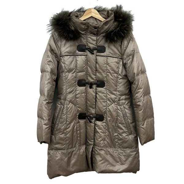 ニジュウサンク 23区 ダウンコート サイズ40 M - ベージュ レディース 長袖/フード着脱可/ファー(チャイニーズラクーン)取り外し可/冬