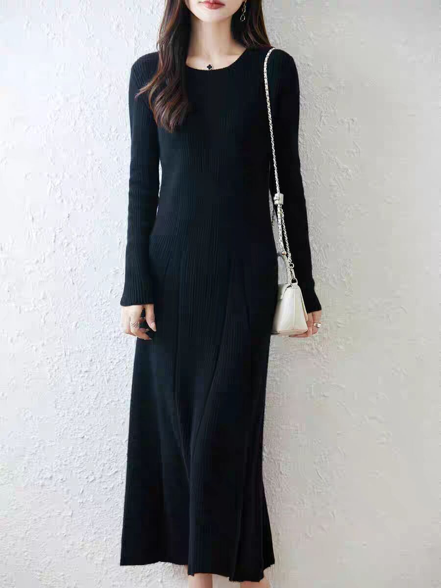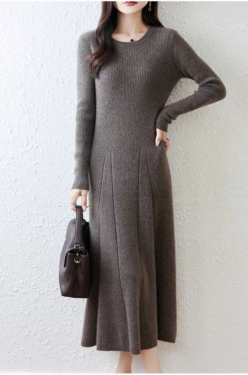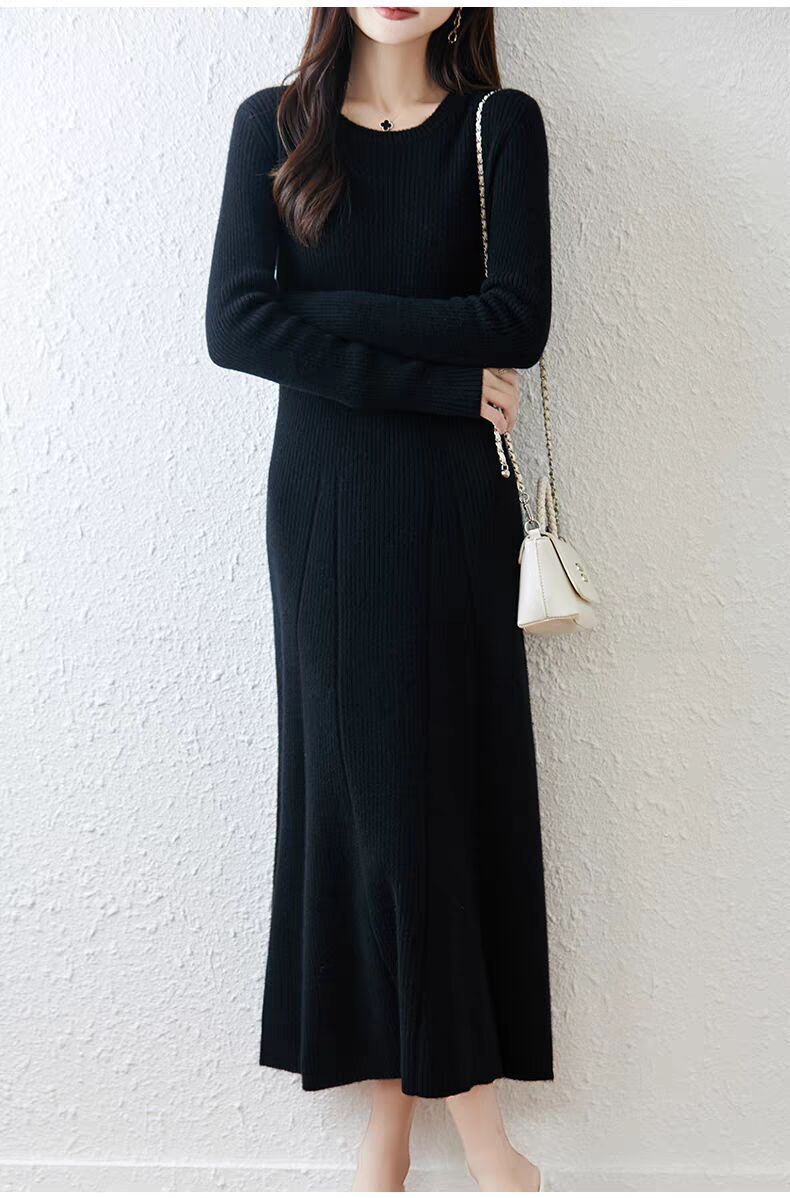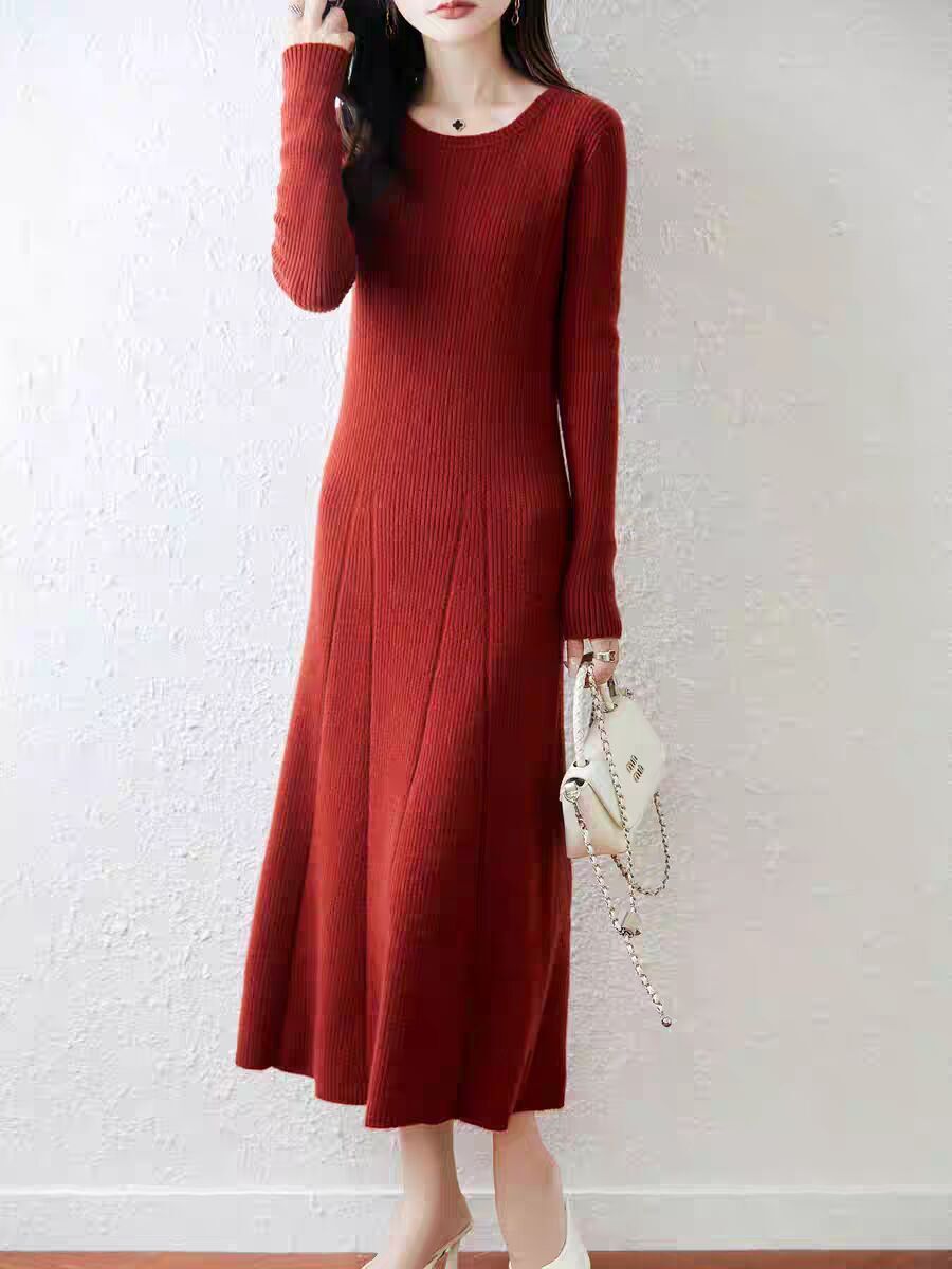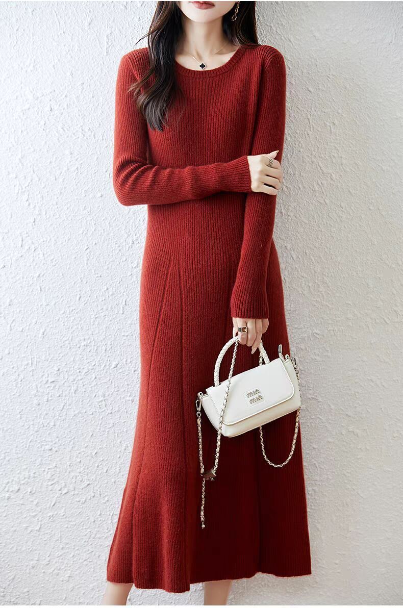 同梱1万円送料無料ニットワンピース気質タイトワンピース レディース ロングワンピース ミモレ丈 長袖 無地 おしゃれ 着痩せ ~赤