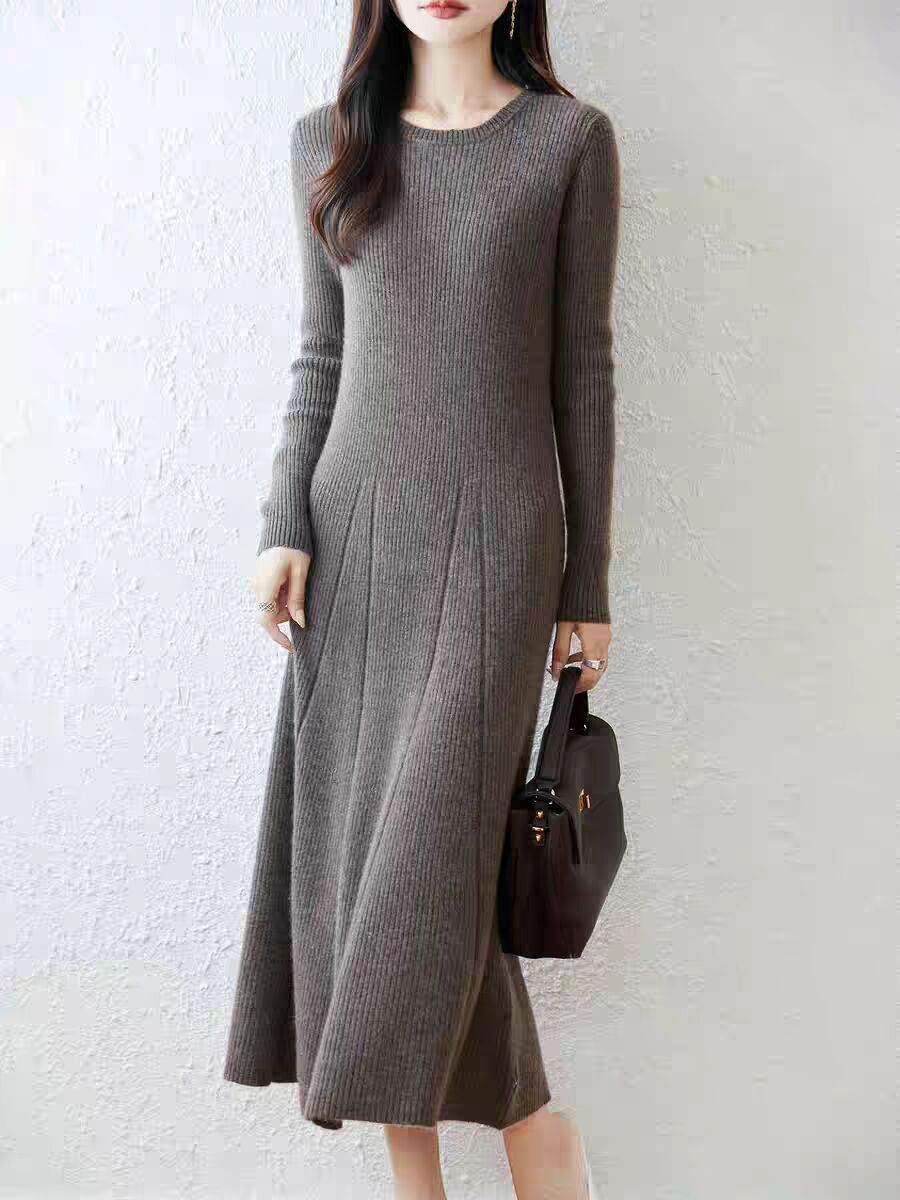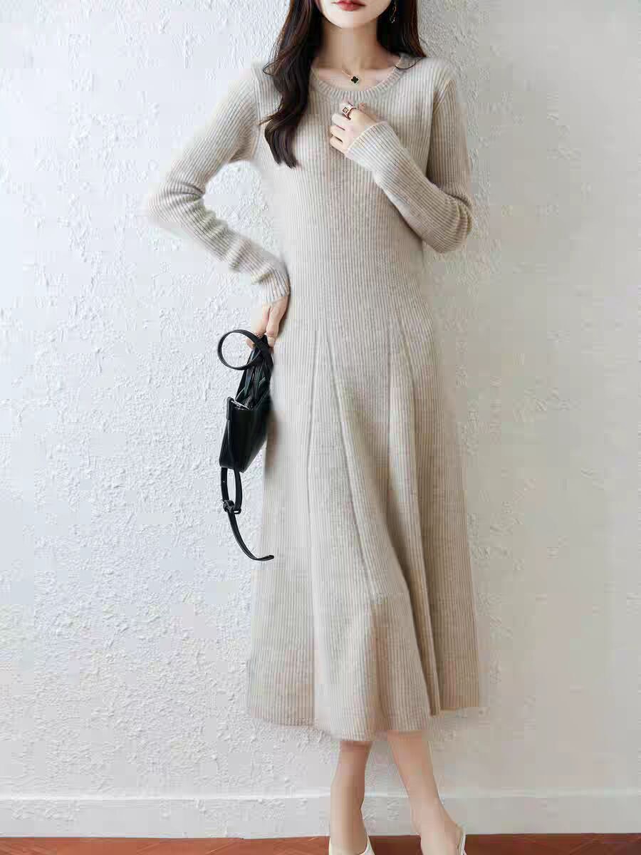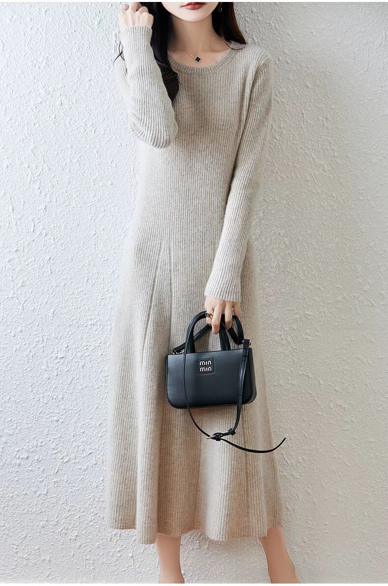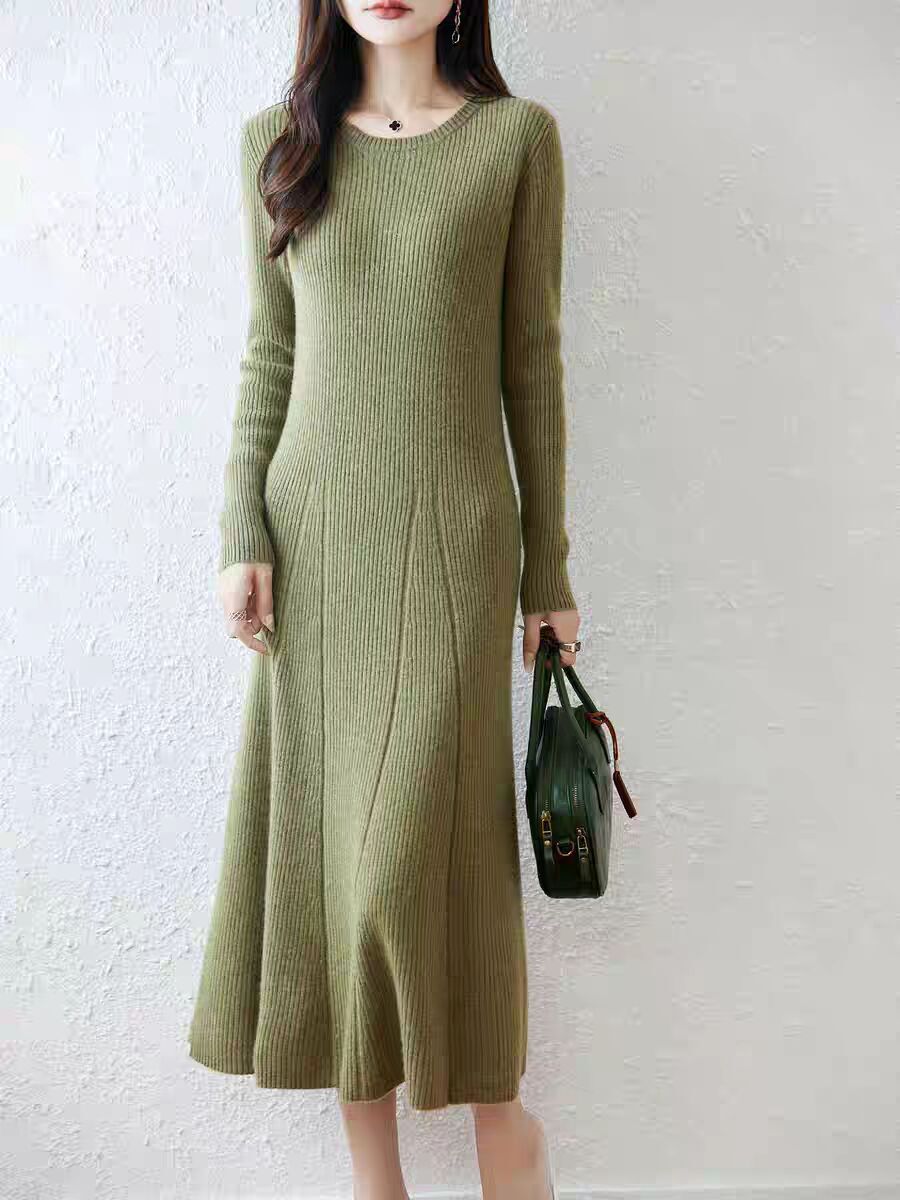 同梱1万円送料無料ニットワンピース気質タイトワンピース レディース ロングワンピース ミモレ丈 長袖 無地 おしゃれ 着痩せ ~赤