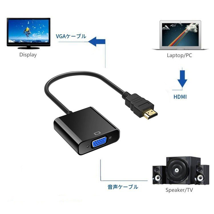 ◆HDMI TO VGA 変換アダプター HDMIVGA信号変換機 VGAコンバーター 変換アダプタ 1080P対応 HDMI信号をVGA出力信号に変換 HDMITOVGA