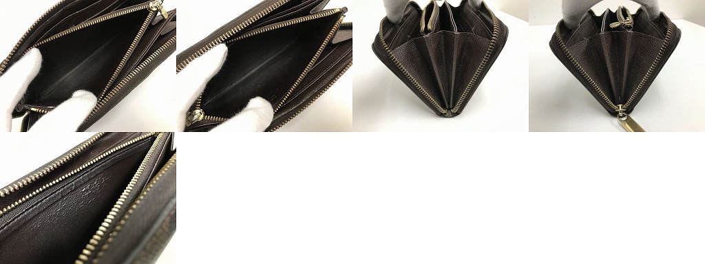 備考仕様/ 開閉:ラウンドファスナー   内側:札入れ3、小銭入れ1、カードポケット8、その他ポケット3   外側:ポケットなし   カラー:エベヌ 茶色 ブラウン