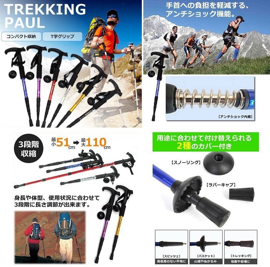 | T型グリップ トレッキングポール 2本セット ブルー |