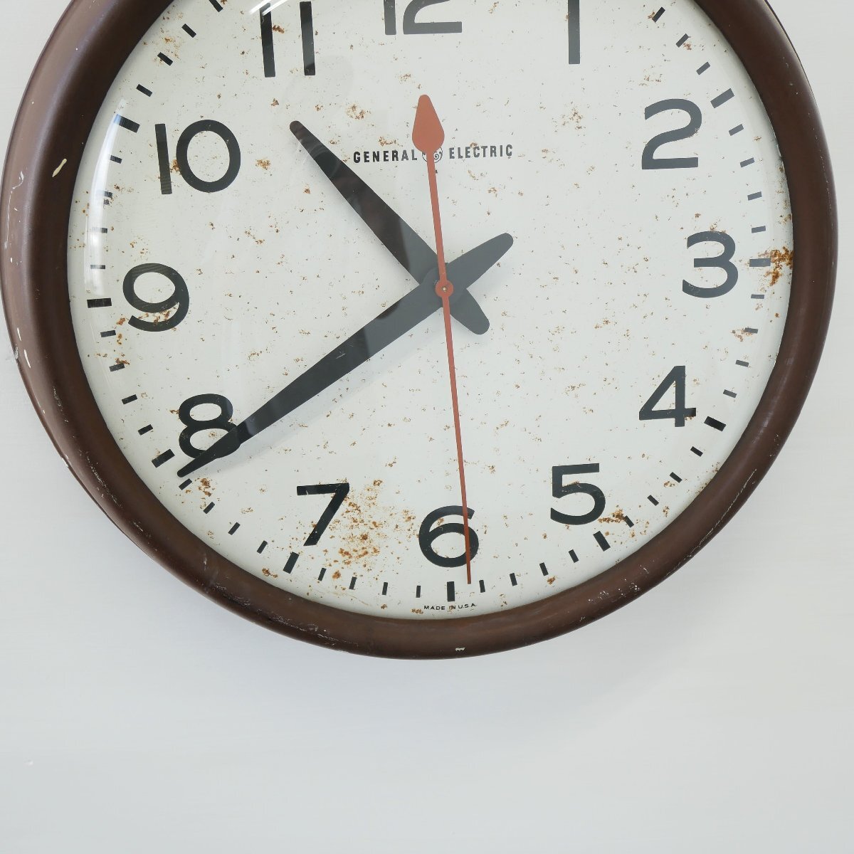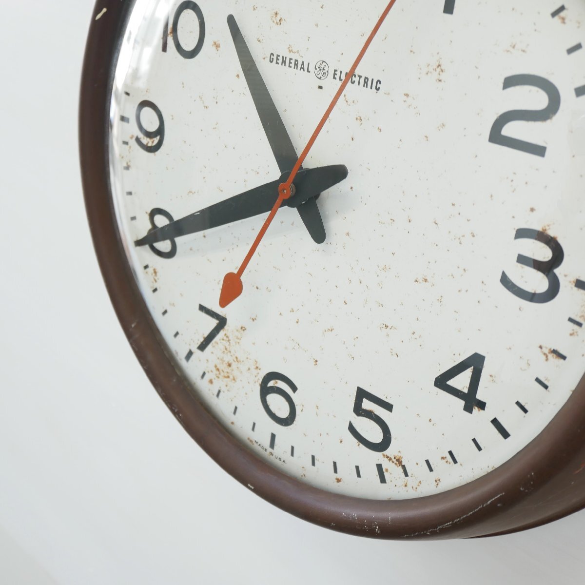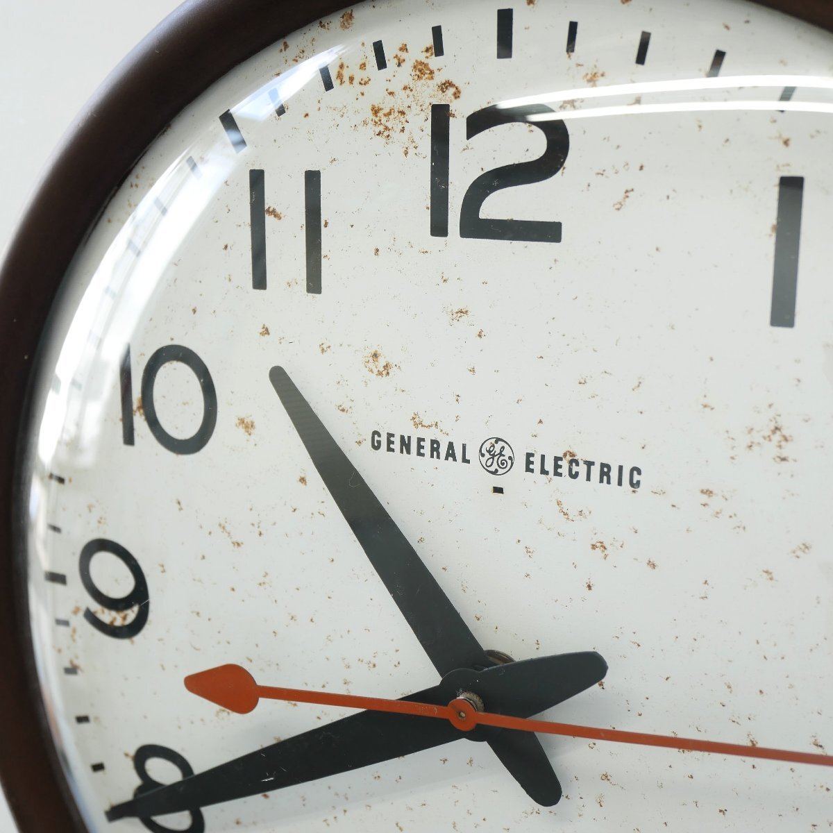 | 商品説明 explanation | 1950年代の「GEGERAL ELECTRIC」社製、スクールクロックです。 学校などに掛けられていた時計で、シンプルでとても見やすいです。 フレーム(ベークライト) カバー(ドーム型ガラス) 針(メタル) 文字盤(メタル) 針はオリジナルですが、ムーブメント(中の機械)は乾電池式(単2)に交換しています。 カチカチ音がしないスイープタイプで、時間はほぼ正確です。 お部屋のインテリアにいかがでしょうか。 |
