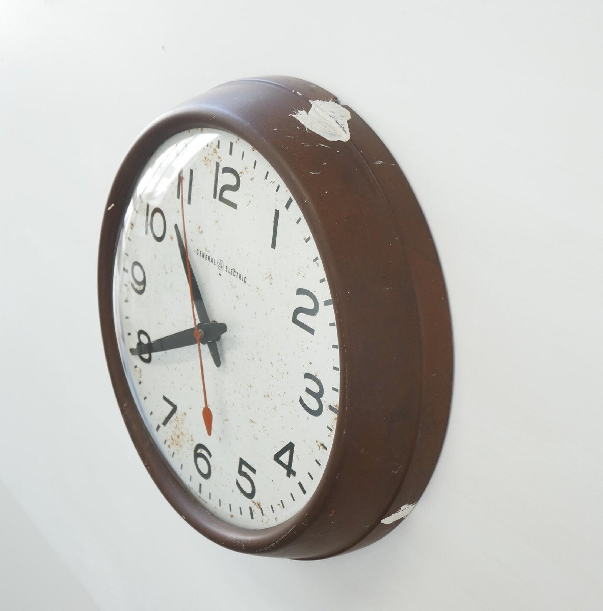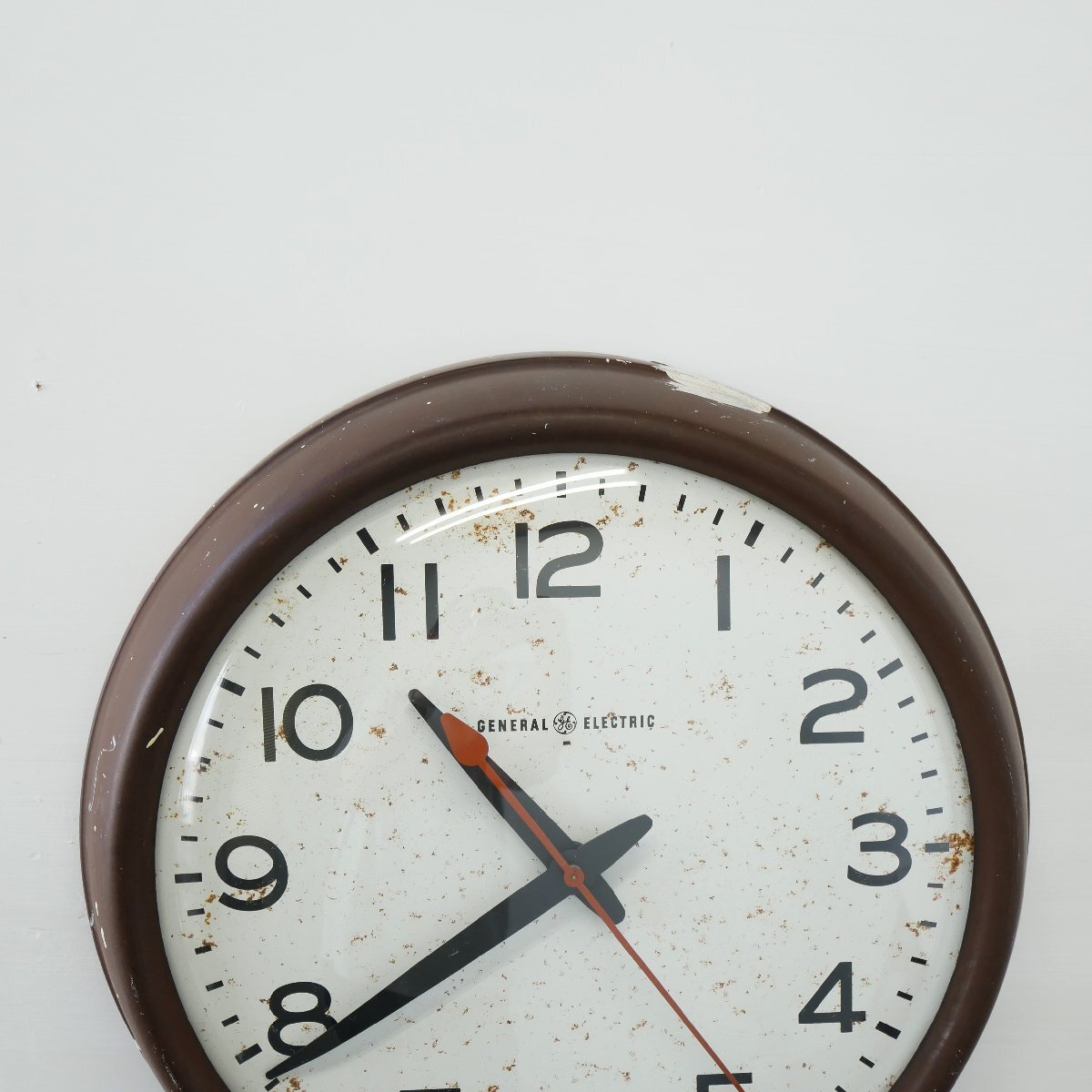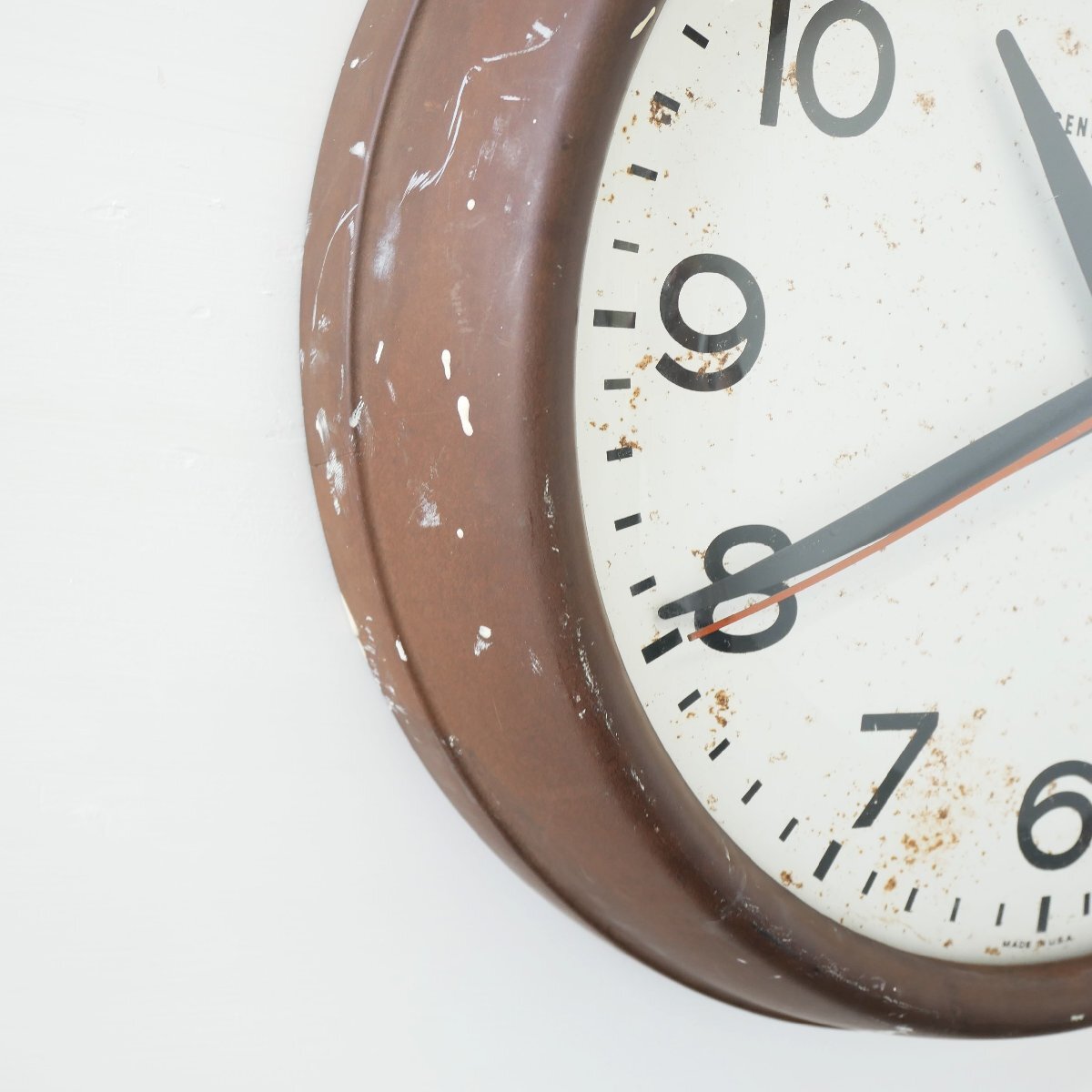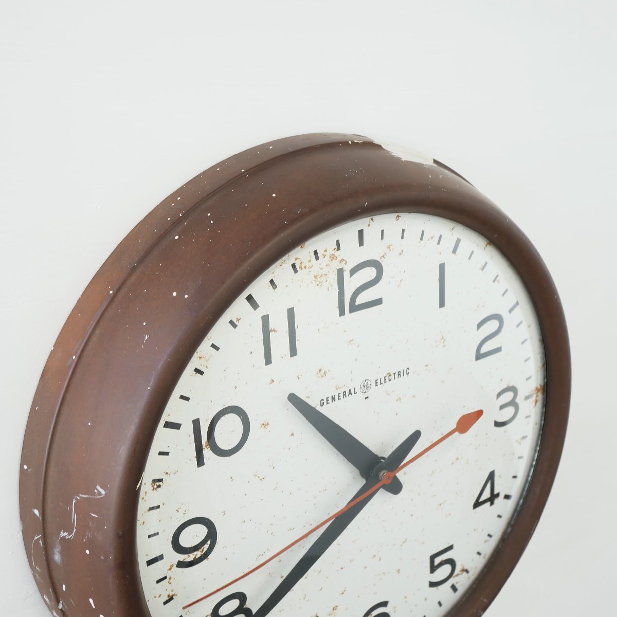 | 商品説明 explanation | 1950年代の「GEGERAL ELECTRIC」社製、スクールクロックです。 学校などに掛けられていた時計で、シンプルでとても見やすいです。 フレーム(ベークライト) カバー(ドーム型ガラス) 針(メタル) 文字盤(メタル) 針はオリジナルですが、ムーブメント(中の機械)は乾電池式(単2)に交換しています。 カチカチ音がしないスイープタイプで、時間はほぼ正確です。 お部屋のインテリアにいかがでしょうか。 |