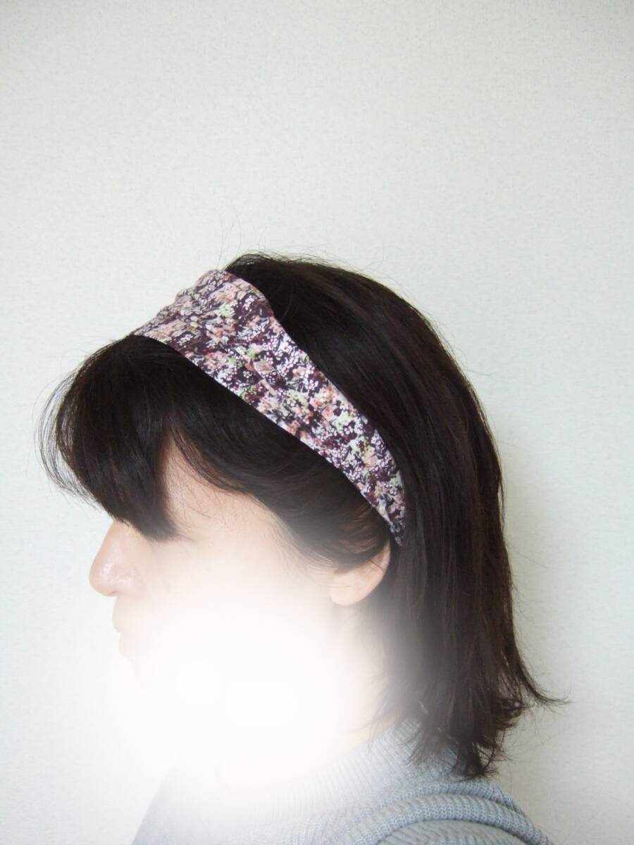 ★即決★ハンドメイド 上品な和風花柄 綿ローン薄手コットンのゆるターバン**ヘアバンド 花粉症の髪よけにも