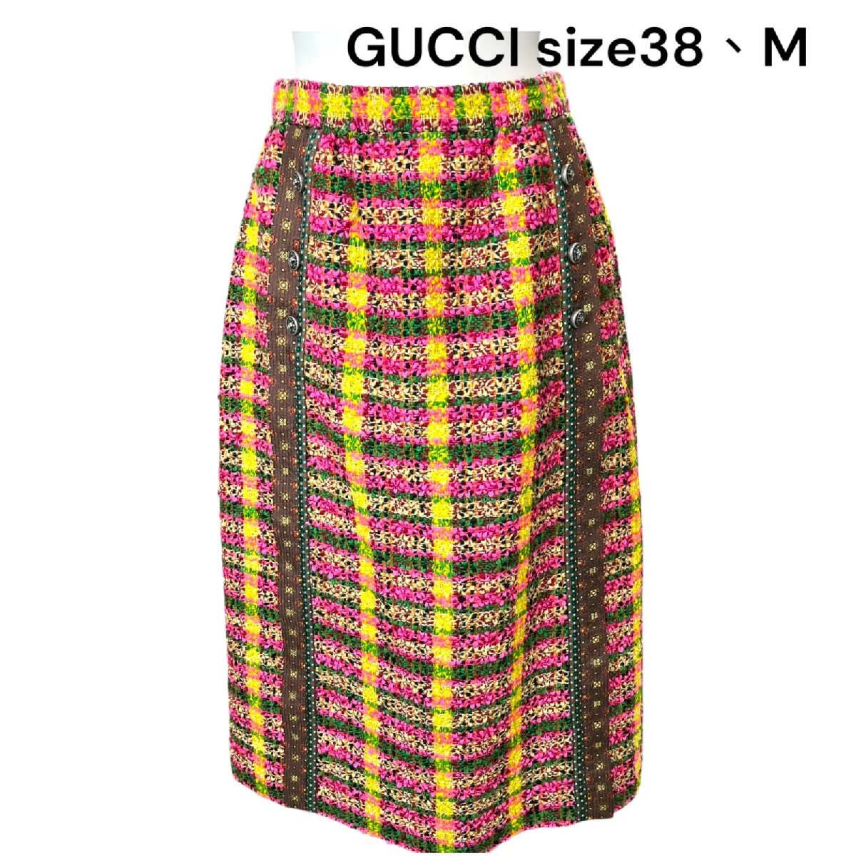 ●美品 グッチ GUCCI ツイード ロング スカート 38、M、9号 レディース S5P176