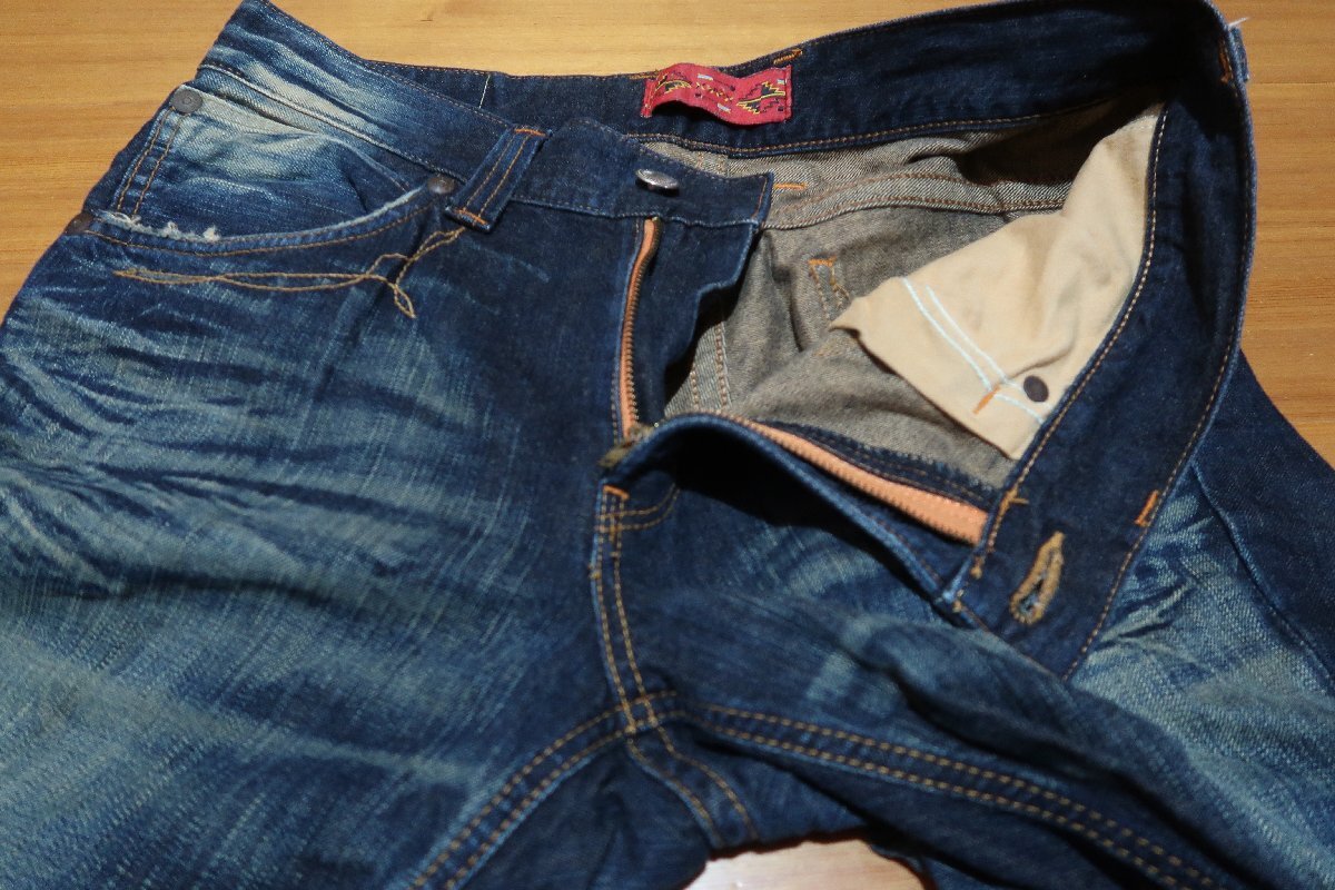 EDWIN エドウィン 421XVS 32インチです、ウエスト約45×2cm 股上約25cm 股下約84cm 裾幅約25cmです、使用感ががあり左腿に穴 バックポケットに穴があります。発送はレターパックプラスのみになります。