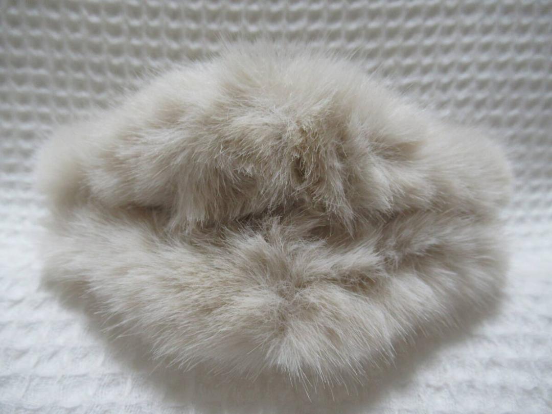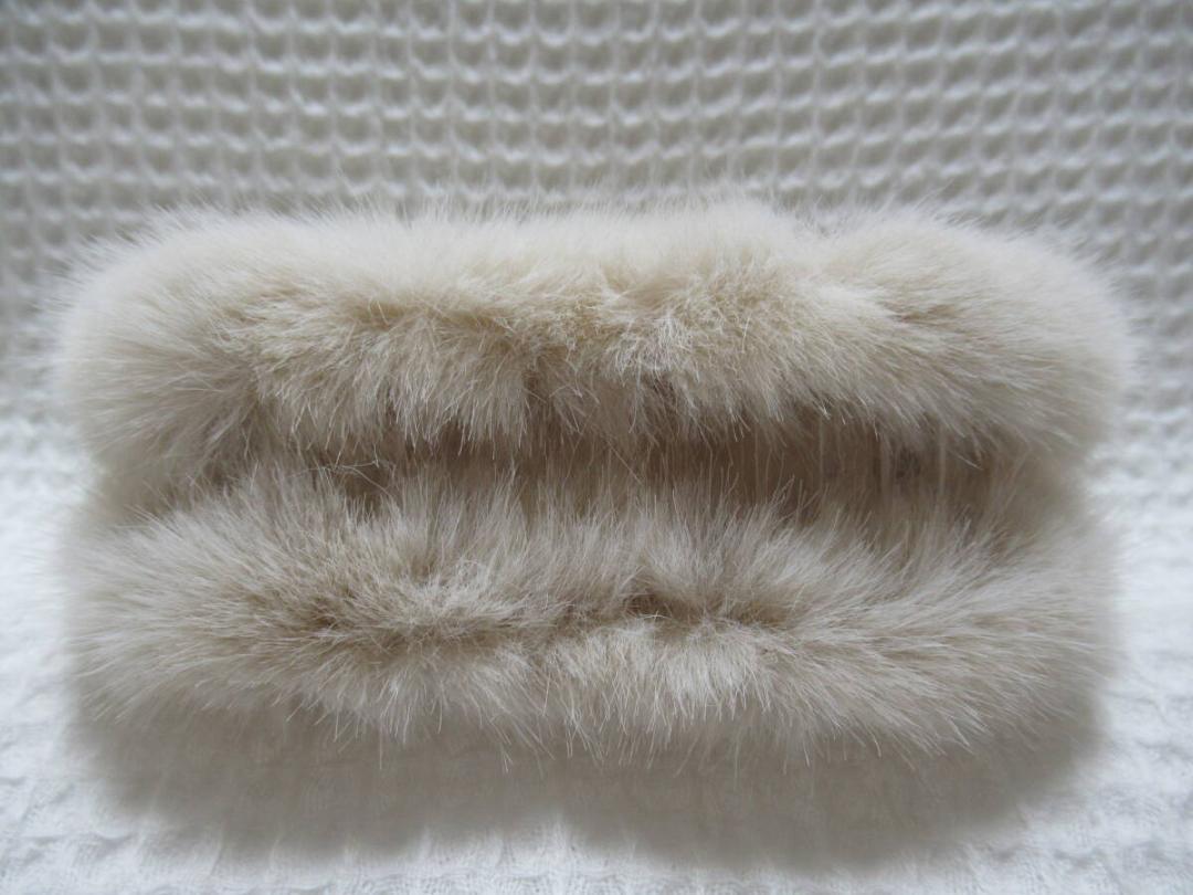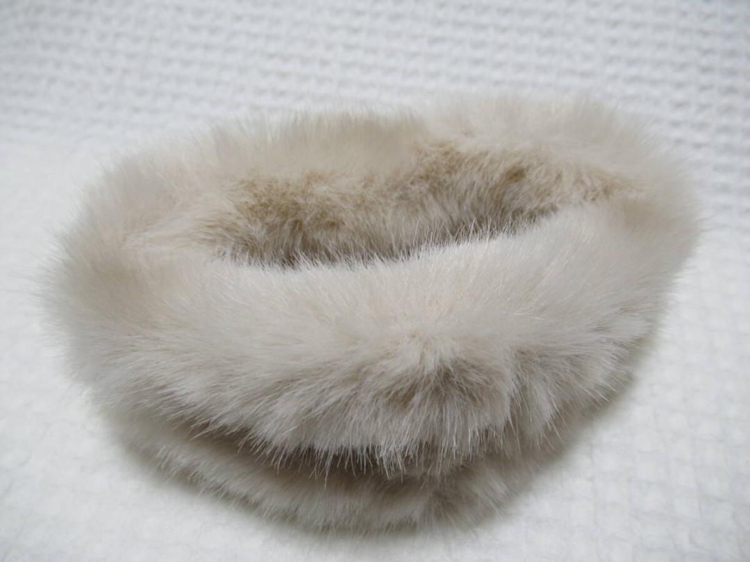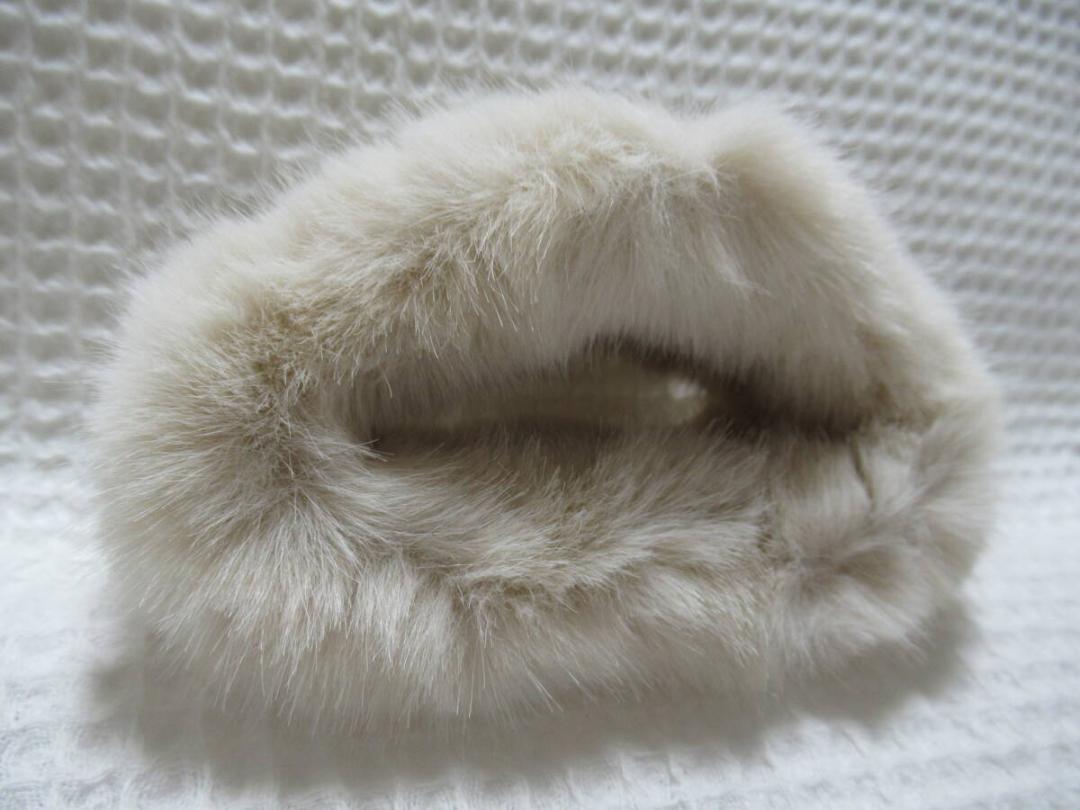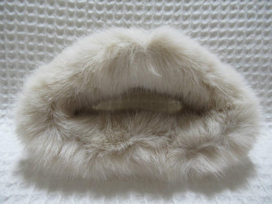 ライトベージュ系色のフェイクファー付き 大き目のクリア系色のクリップ
