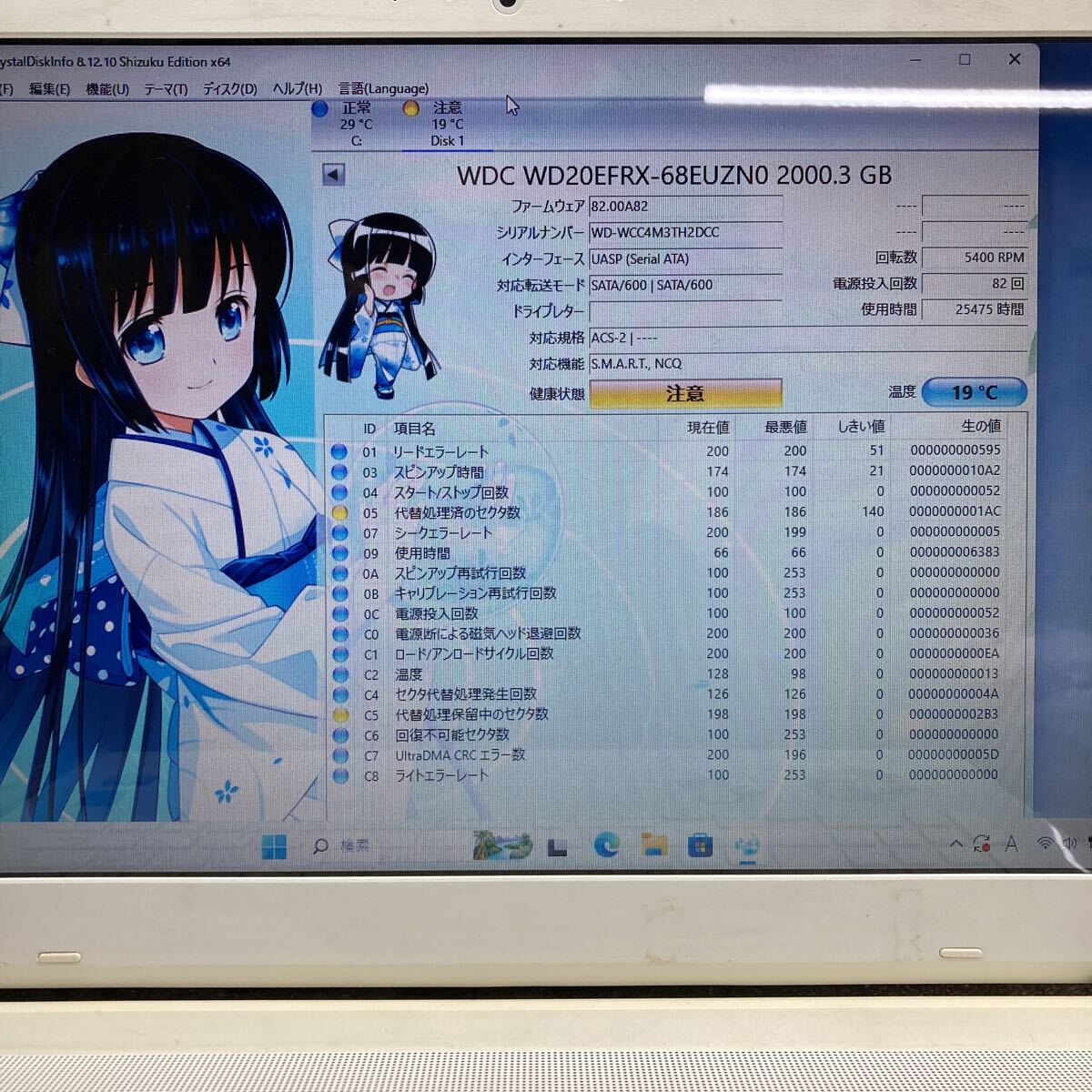 HDD-5090 激安 HDD2TB 3.5インチ SATA 25475時間 内蔵HDD WD WD20EFRX-68EUZN0 Crystaldiskinfoにて注意品 ジャンク