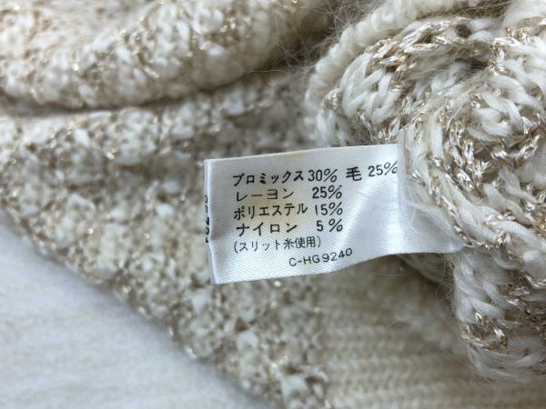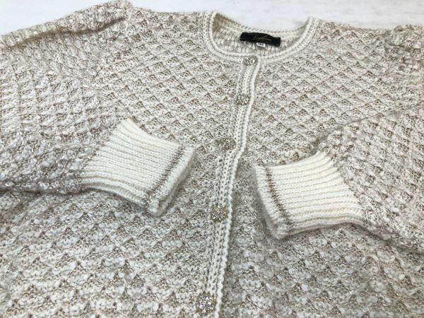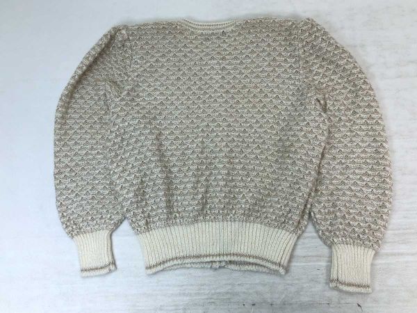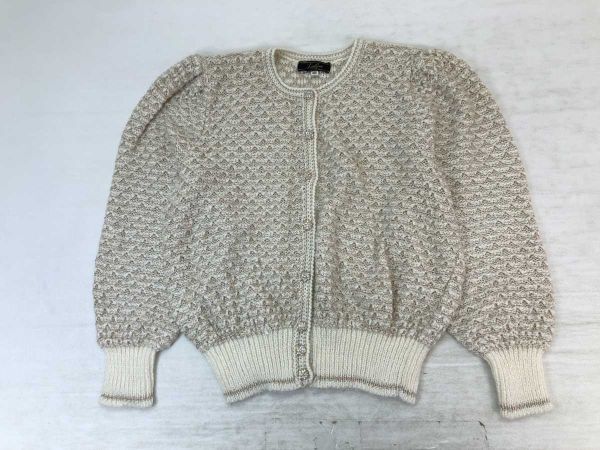 レリアン Leilian レトロ オールド フェミニン パフスリーブ ラメ混合 ニットカーディガン レディース ウール混合 13+ 白ベージュです。