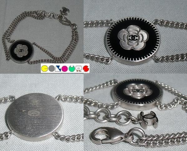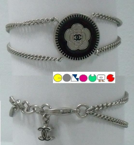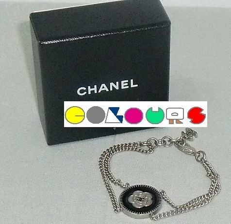 〔COLOURS〕 極美品■カメリア&ココマークボタンモティーフ■Wチェーンブレスレット■シルバー×ブラック■06P■CHANEL